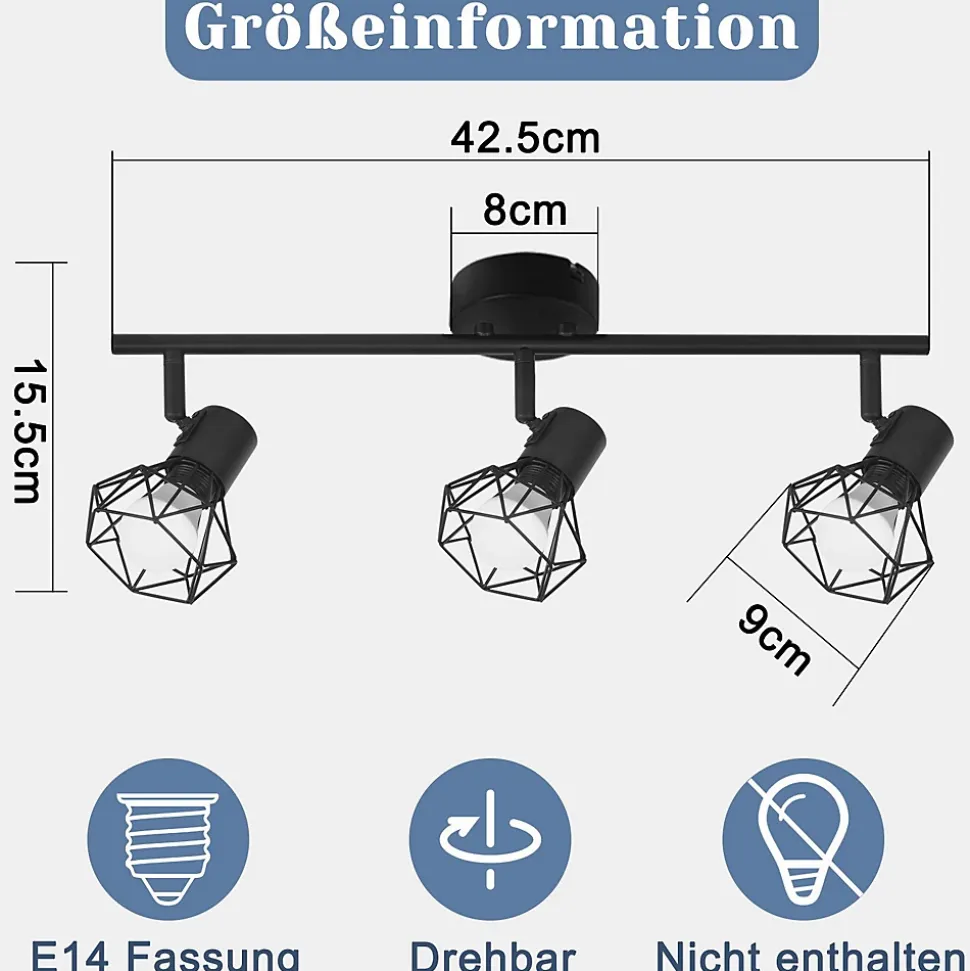 Conception d’éclairage flexible : ce plafonnier vintage peut être réglé à 90° de haut en bas et tourné à 350° à gauche et à droite. Il peut être incliné dans différentes directions selon les besoins pour éclairer différentes zones de la pièce. Cette lampe de cuisine présente une conception lumineuse flexible qui éclaire plus d’espace et rend votre pièce plus lumineuse.Conception unique : ce plafonnier en métal sélectionne soigneusement un matériau en fer de haute qualité comme base et dispose d’un traitement antirouille, difficile à décolorer. L’abat-jour a un design unique avec une forme de grille en fer taillée en diamant, ce spot mural d’intérieur est non seulement beau et visuellement attrayant, mais est également très durable et assure stabilité et fiabilité pour une utilisation à long terme.Douille standard E14 : Ce spot de plafond rétro est équipé d’une douille standard universelle E14 et ne contient aucune ampoule. Vous pouvez librement choisir et installer le type d’ampoules que vous aimez en fonction de vos préférences personnelles. Que vous recherchiez une lumière jaune chaude et agréable ou une lumière blanche brillante et claire, vous pouvez facilement y parvenir, créant ainsi l’atmosphère de lumière et d’ombre adaptée à votre environnement domestique.Multifonction : le plafonnier du salon peut non seulement être installé au plafond comme éclairage de salon, de cuisine et de chambre, mais peut également être utilisé comme applique murale. Que ce soit comme plafonnier ou applique murale, ce spot de plafond vintage s’intègre parfaitement dans différentes scènes pour répondre à vos différents besoins d’éclairage et de décoration.