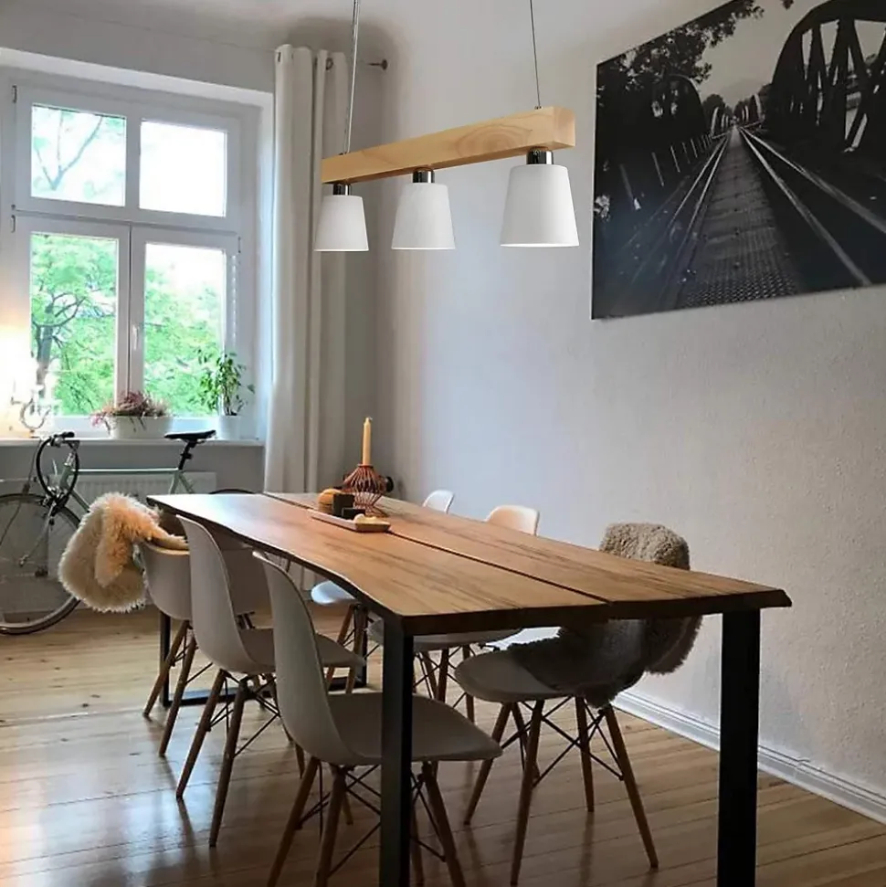 Sanftes warmweiß Licht: gleich 3 warmweißen(3000K) E27 bringen die Hängeleuchte zum Leuchten und sorgen für ausreichend Helligkeit im Raum. Der Lichtschein ist daher besonders schön und einladendHochwertiger Material: Die Lampe aus Eiche und Eisen schafft die besten Voraussetzungen für einen Esstisch, der nicht nur zum Essen, sondern auch zum sozialen Leben dient150CM Flexibel höhenverstellbar: bei Bedarf kann die LED-Hängelampe von bis 150 cm in der Höhe verstellt werden und setzt jeden Wohn- oder Esszimmertisch perfekt in SzeneAntik & Modern Stilrichtung: Die Pendelleuchte harmoniert gut mit modernen Einrichtungsstilen und passt besonders gut zu jungen, schlicht-eleganten WohnumgebungenVielfältige Anwendungen: Kann in Wohnräumen, Küchen , Schlafzimmern, Balkonen, usw. sowie in Kommerziellen- und Ausstellungsräumen wie Restaurants und Galerien, Bar, Café, Halle verwendet werden. Kaufgarantie: 24 Monate