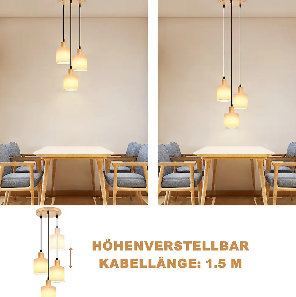 【Lampe en bois et tissu】Cette suspension à 3 ampoules se compose d’un socle en bois et de trois abat-jour de longueurs différentes. Le parasol blanc est simple et élégant, il s’adapte mieux aux différents espaces de vie et apporte un pur confort à votre maison. La combinaison moderne d’abat-jour en bois, en métal et en tissu rend cette lampe de table à manger moderne idéale pour les espaces de vie modernes.【Douille E14 standard】Cette suspension de salle à manger dispose d’une douille E14 et convient à toutes les ampoules E14 standard. Nous recommandons d’utiliser une ampoule jaune chaud pour rehausser l’apparence du bois. Attention : nos produits sont livrés sans ampoules. Vous pouvez choisir différents types d’ampoules LED, d’ampoules et d’ampoules colorées pour décorer votre pièce à votre guise.【Hauteur réglable】Cette lampe de table à manger suspendue en bois peut être librement ajustée dans la longueur de la corde avant et après l’installation, jusqu’à 150 cm. 【Large gamme】Cette suspension vintage a de nombreuses formes à choisir, vous pouvez mélanger et assortir comme vous le souhaitez, n’importe quelle combinaison. Cette lampe à suspension de salle à manger moderne suspendue au-dessus de la salle à manger, de la table à manger, du salon, de la cuisine, du couloir, du balcon, de la chambre à coucher, du bureau à la maison est un point culminant d’éclairage particulier. Il est également idéal pour les espaces commerciaux et d’exposition, tels que les bars, cafés, bureaux, bars alimentaires et autres lieux.【Installation et expédition】Cette lampe suspendue de cuisine comprend des instructions et toutes les pièces d’installation à l’intérieur, elle peut être facilement installée selon les instructions d’installation. Le plafond en bois peut être usé pendant le processus de fabrication et d’expédition, ce qui est normal. Si vous recevez le produit avec des problèmes, veuillez nous contacter à temps, nous vous donnerons une réponse satisfaisante.