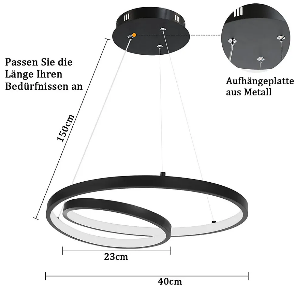 ⚫ 【Suspension avec un sens complet du design】 Il s’agit d’une suspension composée d’un fil de suspension de 150 cm et d’une taille (40 cm) et d’un petit anneau de suspension (23 cm), qui répond à la simplicité des jeunes modernes et a un un sens unique de la personnalité et du design⚫ 【Suspension avec fonction mémoire】 Si vous allumez la lampe et l’allumez pendant 8 secondes, cette suspension peut enregistrer vos paramètres à ce moment-là, et la prochaine fois que vous rallumerez la lumière, ce sera toujours le dernier réglage.⚫【Suspension avec longueur et luminosité réglables】Le fil de suspension de cette suspension peut être ajusté à n’importe quelle longueur de 0 à 150 cm ; la luminosité peut être réglée de 5 % à 100 % par télécommande ; Peut être utilisé à la fois comme suspension et comme plafonnier ; La luminosité, réglable à tout moment, peut s’adapter à n’importe quel environnement d’éclairage naturel⚫ 【Scène appropriée】 Cette suspension a une forme simple et élégante, riche en design et en fonctionnalités, adaptée à la décoration intérieure telle qu’une lampe de table à manger, une lampe de chambre, une lampe de salon, une galerie d’art, etc.⚫ 【Lampe à suspension avec 2 ans de garantie】 Si vous constatez des dommages à la lampe à suspension pendant le processus de livraison ou des défauts dans la lampe de table à manger pendant l’utilisation, n’hésitez pas à nous contacter. offre un service après-vente parfait
