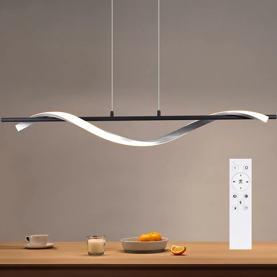 Design : la suspension LED au design ondulé est composée d’un corps de lampe de haute qualité en aluminium et en fer, qui ensemble sont très élégants. Les ampoules LED sont installées de manière permanente et une bonne efficacité énergétique peut être garantie grâce à la technologie LED.Hauteur réglable : la hauteur de la suspension LED peut être réglée jusqu’à 150 cm, qui peut être ajustée en fonction de l’espace requis. L’esthétique et la fonctionnalité incarnent l’unité parfaite dans ce lustreIntensité variable : le plafonnier LED est livré avec une télécommande qui peut être utilisée pour modifier en continu la luminosité et la température de couleur du blanc chaud, blanc neutre au blanc froid (3 000 K à 6 000 K). Avec la fonction mémoire, le dernier réglage peut être enregistré jusqu’à ce que vous allumiez à nouveau la lampeDétails techniques : Matériau : aluminium et fer ; Dimensions du produit : 100*8,5*16 cm ; Tension : 230 V ; Consommation électrique : 22 W ; Intensité variable : oui ; Type de lampe : LED ; Alimentation et type de prise : électrique filaireApplication : cette suspension convient pour la table à manger, la chambre, la cuisine, le salon, le bureau, le bureau. Hôtel, restaurant bar à utiliser, vous pouvez choisir en fonction de vos besoins réels GARANTIE : 2 ANS.