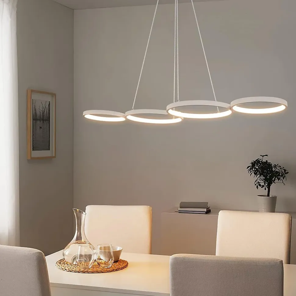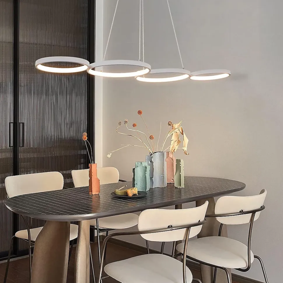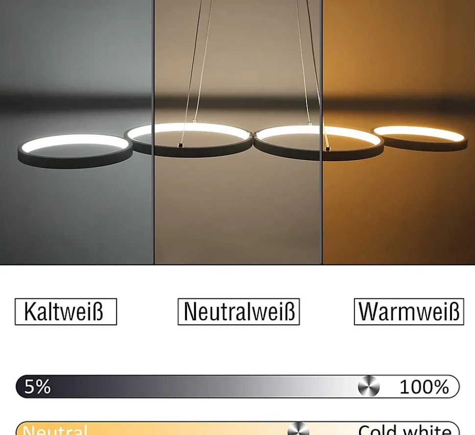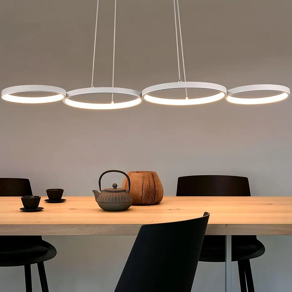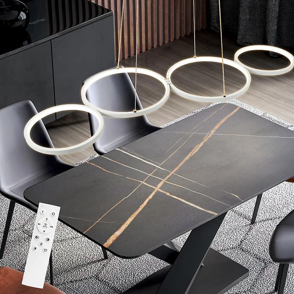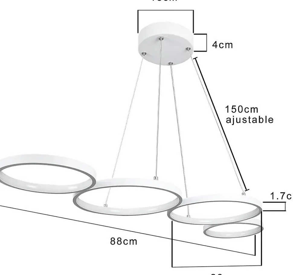 ⚪️【Suspension accrocheuse et unique】 : Cette suspension se compose de 4 anneaux circulaires, le diamètre d’un seul anneau est de 26 cm et la longueur totale des 4 anneaux est de 88 cm. Il était fabriqué en aluminium de haute qualité. Avec son design avant-gardiste et ses nuances de couleurs organiques, il attirera tous les regards dans n’importe quelle pièce.⚪️【Suspension avec fonction mémoire】Si vous allumez la lampe et l’allumez pendant 8 secondes, cette suspension peut enregistrer vos paramètres à ce moment-là, et la prochaine fois que vous rallumerez la lumière, ce sera toujours le dernier réglage.⚪️【Suspension réglable en hauteur avec luminosité et température de couleur réglables】 : La suspension de cette suspension est réglable en hauteur entre 0 et 150 cm. La luminosité est réglable via la télécommande par incréments de 5 % à 100 % et la température de couleur peut être commutée entre blanc chaud, blanc neutre et blanc froid pour prendre en charge tout environnement d’éclairage naturel.⚪️【Scène appropriée】Cette suspension a une forme simple et élégante, riche en design et en fonctionnalités, adaptée à la décoration intérieure telle qu’une lampe de table à manger, une lampe de chambre, une lampe de salon, une galerie d’art, etc.⚪️【Suspension avec 2 ans de garantie】Si vous constatez des dommages à la suspension pendant le processus de livraison ou des défauts dans la lampe de table à manger pendant l’utilisation, n’hésitez pas à nous contacter. offre un service après-vente parfait