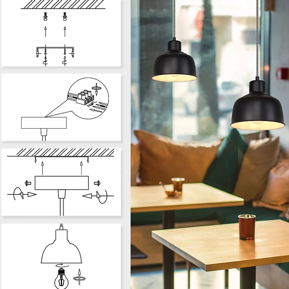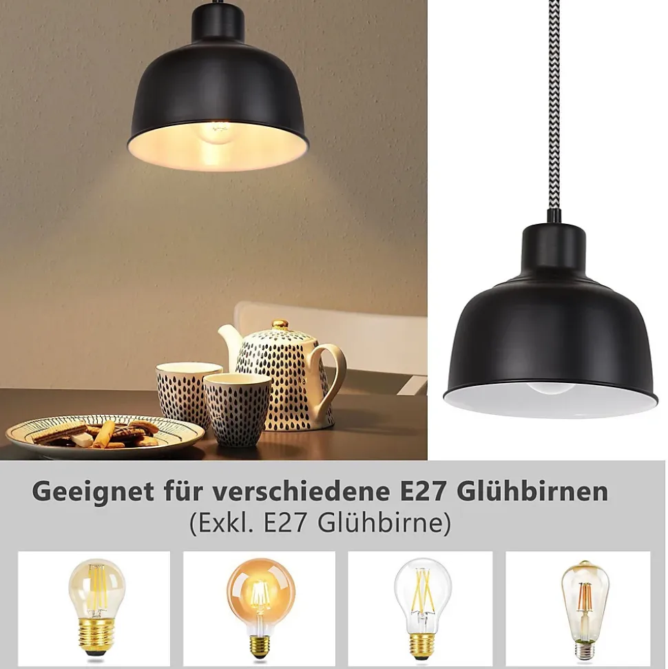 【Lampe suspendue industrielle】 Cette lampe suspendue noire est en métal. La couleur noire convient à tous les styles d’intérieur (vintage/moderne). L’abat-jour en métal a la forme d’un hémisphère et l’éclairage de la suspension est centré sur le bas de l’abat-jour. L’éclairage concentré ajoute beaucoup de mystère et d’atmosphère à la vie.【Détails de la suspension】 La couleur extérieure de la suspension est noire. Types d’ampoules disponibles : LED/CFL/ampoule avec douille E27 (puissance max. : 40 W) | Tension : 220 -240 V/50 Hz | Diamètre de l’abat-jour : 7″ » | Hauteur de l’abat-jour : 14,5 cm | Longueur du câble de suspension : 150 cm | Diamètre du plafonnier : 10 cm.【Installation facile】 Notre suspension industrielle vintage est livrée avec toutes les fixations et instructions et peut être facilement assemblée selon les instructions d’installation. Cette suspension est le luminaire idéal pour créer de la chaleur et de la créativité dans votre cuisine ou votre salon. Vous pouvez les placer individuellement ou en groupe. Parfait pour les bars, salons, cuisines, lofts, salles à manger, bureaux, chambres et plus encore.【Conception de l’abat-jour】 Le cache-lampe noir de cette suspension vintage protège non seulement l’ampoule, mais concentre également la lumière au maximum sur la table à manger. L’abat-jour minimaliste est parfait pour ajouter un élément décoratif à votre pièce qui apportera chaleur et glamour à votre espace.【Service client attentif】Nous offrons une garantie vendeur de 2 ans pour la suspension. Nous vérifions soigneusement tous les produits avant la livraison. Si vous avez des questions, veuillez nous écrire un e-mail via , nous vous répondrons dans les plus brefs délais