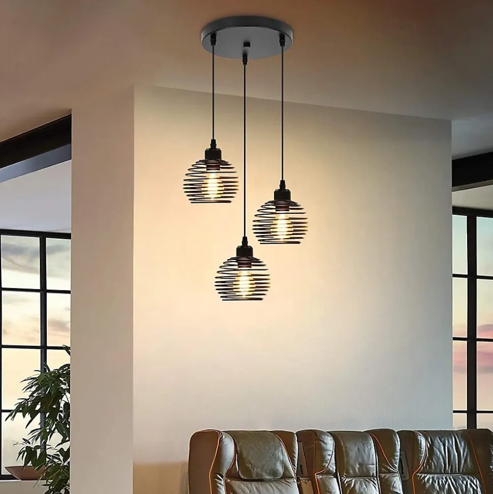 Design rétro : Cette lampe de table à manger à 3 lampes se compose d’une base ronde et d’abat-jour de différentes longueurs dans un aspect grille, la lampe suspendue au design vintage minimaliste s’intègre visuellement dans n’importe quel espace de vie avec un mobilier moderne, un style industriel ou un look vintage. Leur esthétique rétro-industrielle ajoute une touche de nostalgie et de style à n’importe quelle pièce.Détails techniques : Dimension du produit : environ 30*24*139CM. Diamètre du socle : 24 cm. Ampoules incluses : non. Prise : E27. Puissance maximale de l’ampoule : 25W. Longueur du câble : 120 cm. Réglable en hauteur : oui. Matériel: fer. Alimentation et type de prise : électrique filaire. Tension : 230 VDouille E27 standard : La lampe suspendue vintage offre une douille E27 et s’adapte aux ampoules E27 normales (max. 25W). Nous recommandons des ampoules à filament transparent ou rustiques dorées pour compléter le look vintage. PS : Ampoules non inclusesHauteur réglable de 120 cm : Selon vos souhaits, la hauteur des lumières individuelles peut être ajustée jusqu’à 120 cm de long ; Veuillez NOTER : en raison de l’espace limité de la plaque de plafond de la suspension, si vous devez régler une longueur plus courte (entre 10 cm et 110 cm), vous devez couper le câble.Matériau et installation facile : lampe suspendue en métal noir, finition de haute qualité dont vous profiterez longtemps. Ce lustre vintage comprend des instructions et tout le matériel de montage pour une installation rapide et facile. GARANTIE : 2 ANS