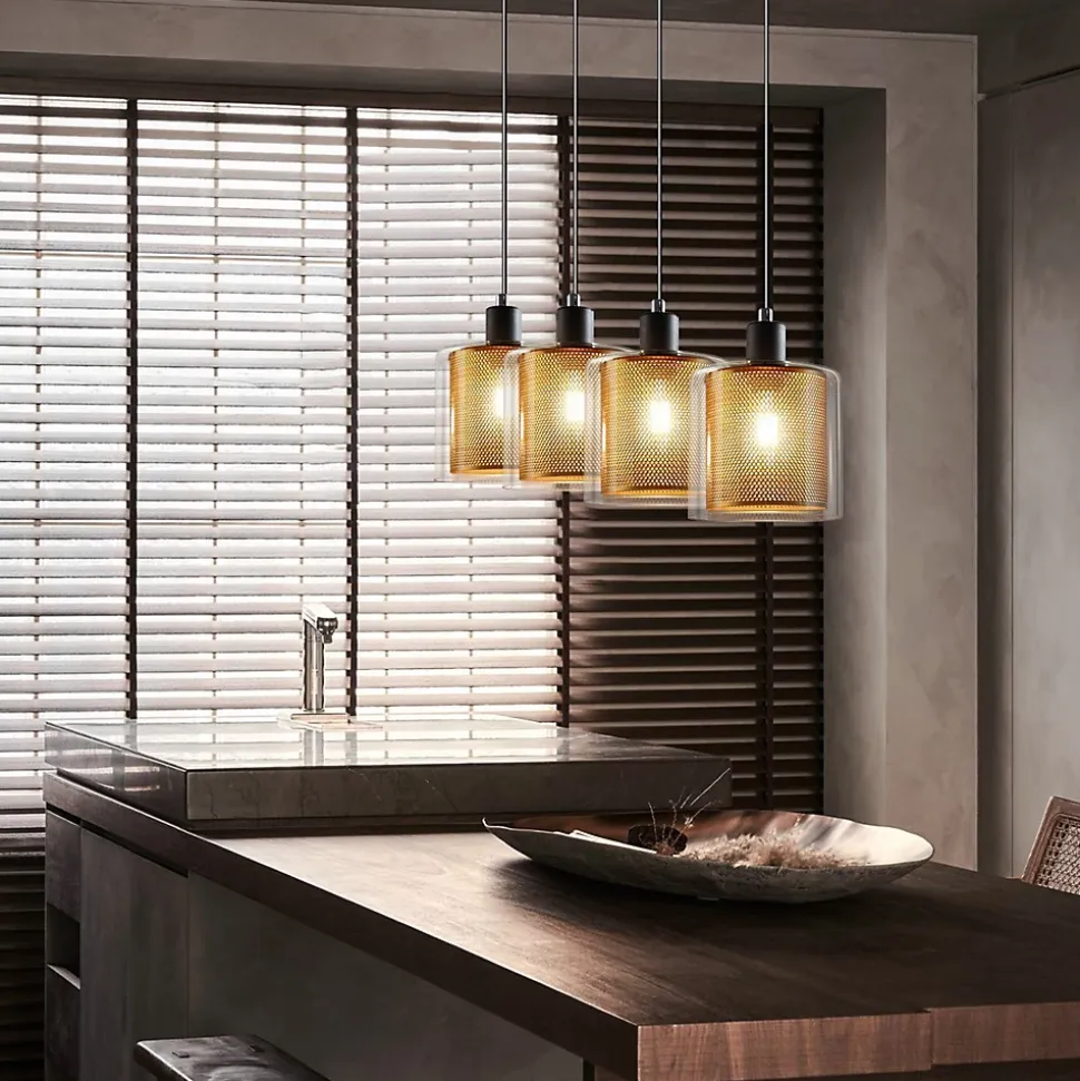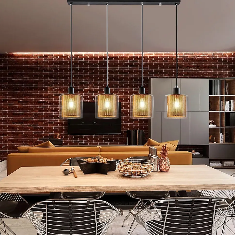 [Design] La suspension et la douille de la suspension ont été peintes en noir, et le câble est également noir. L’abat-jour à deux couches fait de la suspension un accroche-regard décoratif.[Dimensions] 18 x 13 x 150 cm (L x l x H) ; Support de plafond 12 x 12 x 2,5 cm (L x l x H) ; Diamètre du parasol (intérieur) 11 cm, diamètre de l’abat-jour (extérieur) 13 cm, hauteur 16 cm.[Hauteur réglable] réglable en hauteur librement avant et après le montage jusqu’à 150 cm. Son design unique attirera tous les regards.[Matériau] L’abat-jour intérieur est constitué d’un treillis métallique doré, tandis que l’abat-jour extérieur est en verre transparent.[Application] Cette suspension facile à installer est parfaite dans la salle à manger, le salon, la chambre, le café ou l’espace de travail commercial ainsi qu’à suspendre.: