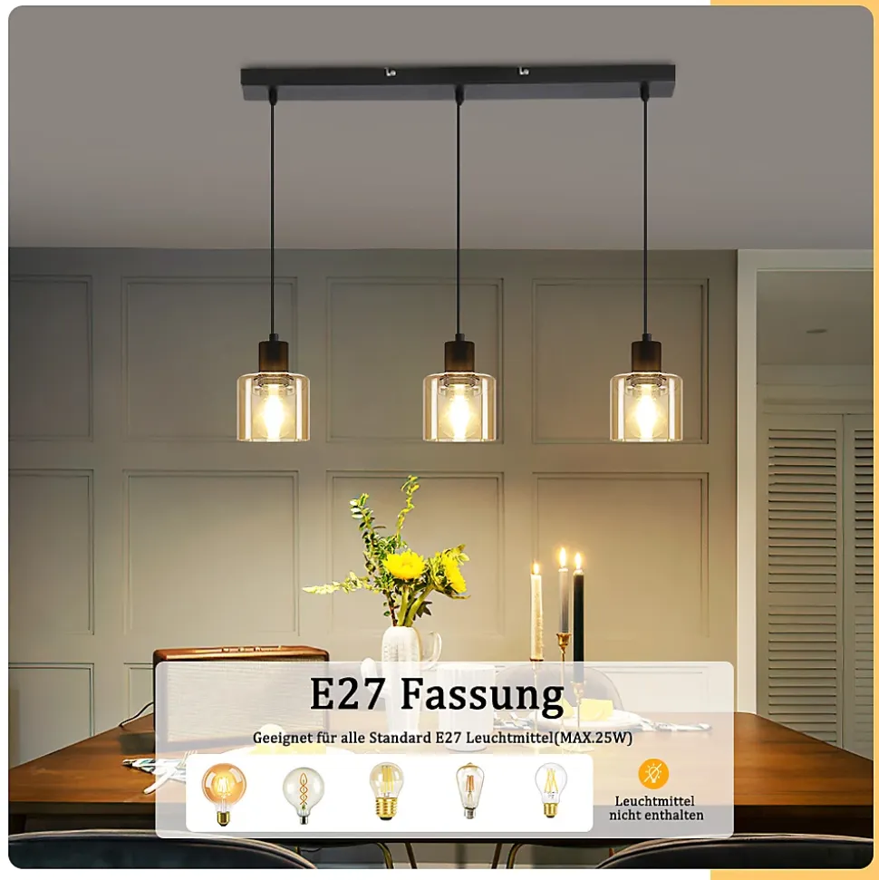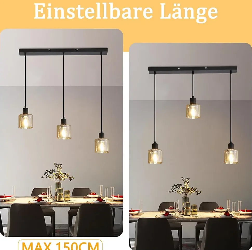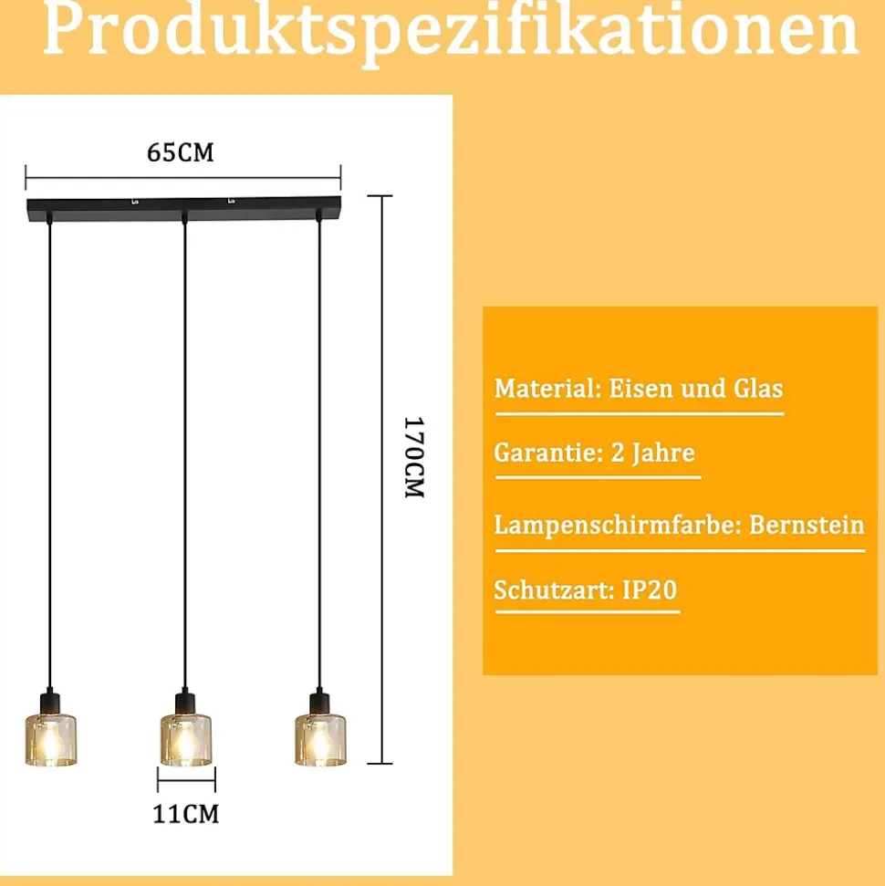 Suspension Vintage en Verre et Fer avec Abat-jour TranslucideDesign VintageLa plaque de plafond et le câble noirs soulignent le style vintage de cette suspension. L’abat-jour translucide diffuse la lumière uniformément, créant un effet décoratif unique. Associée à une ampoule vintage en fibre de carbone, elle devient un accent artistique dans votre intérieur.Matériau RobusteCette suspension est composée de verre élégant et de fer robuste. Le verre apporte une touche de sophistication, tandis que la plaque de plafond en fer assure stabilité et durabilité. Le fer soigneusement travaillé renforce le style industriel et le charme vintage de la suspension.Détails TechniquesDimensions : 65 x 11 x 170 cmLongueur Réglable : De 0 à 150 cm pour une adaptation parfaite à vos besoins.Douille : E27 (ampoule non incluse). Choisissez l’ampoule qui correspond à vos préférences pour obtenir l’éclairage souhaité.Applications PolyvalentesCette suspension vintage convient à une variété de scénarios, y compris les salles à manger, les salons, les chambres, les salles d’étude et les cafés. Son design élégant et sa lumière douce offrent une expérience visuelle agréable, que vous soyez seul ou en compagnie d’amis.Service ClientLes produits peuvent subir des chocs lors du transport, occasionnant parfois des dommages comme des bris de verre. Si vous rencontrez des problèmes lors de la réception du produit, n’hésitez pas à nous contacter. Notre équipe de service client est toujours disponible pour vous aider.