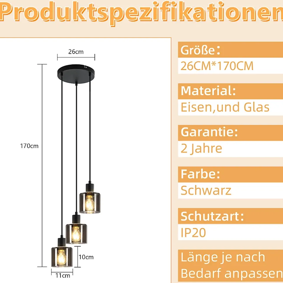 【Design】La plaque de plafond et le câble de ce lustre sont peints en noir, une couleur qui met parfaitement en valeur le style vintage. L’abat-jour transparent assure une bonne diffusion de la lumière, créant un effet décoratif unique. L’effet décoratif de la lampe est encore plus efficace, notamment en combinaison avec l’ampoule en fibre de carbone de style vintage. Ce n’est pas seulement une lampe, mais une œuvre d’art qui ajoutera une touche unique à votre maison.【Détails techniques】 : les dimensions de cette lampe suspendue sont de 26 cm x 26 cm x 195 cm. La flexibilité de cette conception d’éclairage vous permet de choisir librement la bonne longueur, allant de 0 à 150 cm, pour obtenir le meilleur effet visuel et la meilleure fonctionnalité. Le produit ne contient pas d’ampoule, le type d’ampoule applicable est E27. Vous pouvez librement choisir l’ampoule appropriée en fonction de vos préférences et de vos besoins pour créer un effet d’éclairage unique.✨【Matériau】 : cette suspension est fabriquée en verre de haute qualité et en fer solide et durable. Le matériau en verre donne au lustre une touche pure et un look élégant. Dans le même temps, la plaque de plafond en fer du lustre contribue à la stabilité et à la durabilité globales. Le matériau en fer a été soigneusement conçu et conçu pour mettre en valeur le style industriel et l’ambiance vintage du lustre.【Champ d’application】 : cette lampe à suspension vintage en verre convient à une variété de scénarios, que ce soit le salon, la salle à manger ou la chambre, ou même la salle d’étude ou le café peut montrer son charme unique. 【Service client】:Les produits peuvent subir des chocs et des collisions pendant le transport, et occasionnellement des dommages tels que : Des bris de verre peuvent survenir. Si vous rencontrez des problèmes lors de la réception du produit, n’hésitez pas à nous contacter. Nous offrons également une garantie de deux ans.