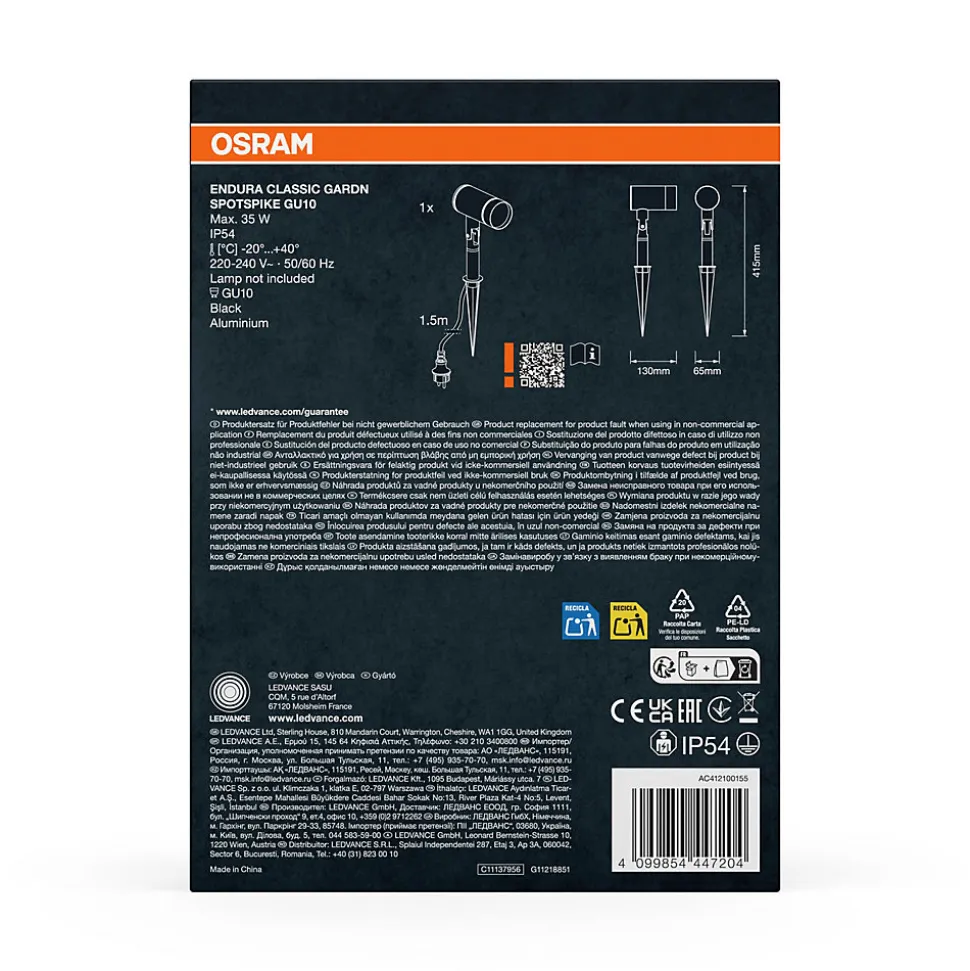 Piquet extérieur Endura Classic Garden avec douille GU10. Caractéristiques du produit: Corps en fonte d’aluminium. Tête de luminaire réglable. Avantages du produit: Grande flexibilité dans le choix de la source lumineuse grâce au culot GU10. Installation facile et rapide. Matériaux de qualité. Zones d’application: Éclairage d’entrée. Patios, balcons. Façades de bâtiments. Technique / Accessoires: Accessoires de montage et de connexion complets fournis. Aucune source de lumière incluse. Conseils de sécurité: Tous les branchements électriques doivent être effectués par une personne qualifiée.. Attention, risque de choc électrique.. Produit de classe de protection I. Toutes les pièces métalliques conductrices d’électricité du boîtier qui peuvent absorber une tension pendant le fonctionnement ou pendant la maintenance en cas de défaut doivent être reliées en permanence au conducteur de protection..