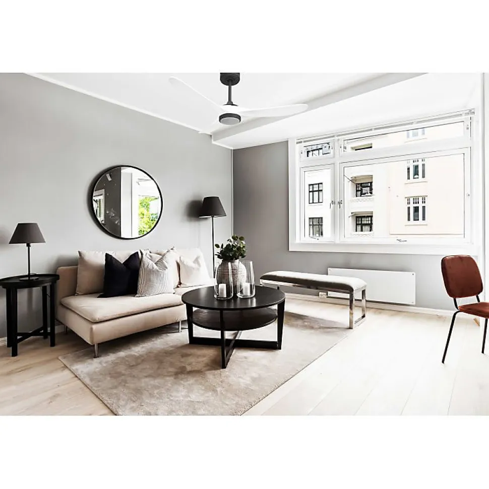 Klassfan Ventilateur de plafond avec pales en bois de balsa lamellé-collé Modèle : Kl_Ouray2DC1_P7Wi132_L1Ouray_Bk Découvrez le ventilateur Ouray, successeur du célèbre modèle Geronimo de Klassfan. Ce ventilateur/déstratificateur polyvalent et modulable est conçu pour s’adapter à tous les intérieurs grâce à son design moderne et ses pales en bois de balsa disponibles en plusieurs couleurs et tailles.Caractéristiques Le ventilateur Ouray fonctionne avec un moteur DC, garantissant un contrôle optimal de la vitesse, un fonctionnement silencieux, une longue durée de vie et une efficacité énergétique. Classé Hyper Silence, il est pratiquement inaudible jusqu’à la vitesse 3, et même aux vitesses supérieures, seul le mouvement de l’air est perceptible. Idéal pour les pièces sensibles aux bruits comme les salons, bureaux ou chambres, l’Ouray est livré avec deux tiges de plafond de 12,5 cm et 25 cm, avec des options de tiges de 60, 120 et 180 cm.Options de personnalisation Les pales de la série Ouray sont en bois de balsa léger et résistant, avec la possibilité de monter 2 ou 3 pales selon vos préférences. Le modèle P7 est adapté pour des pièces de