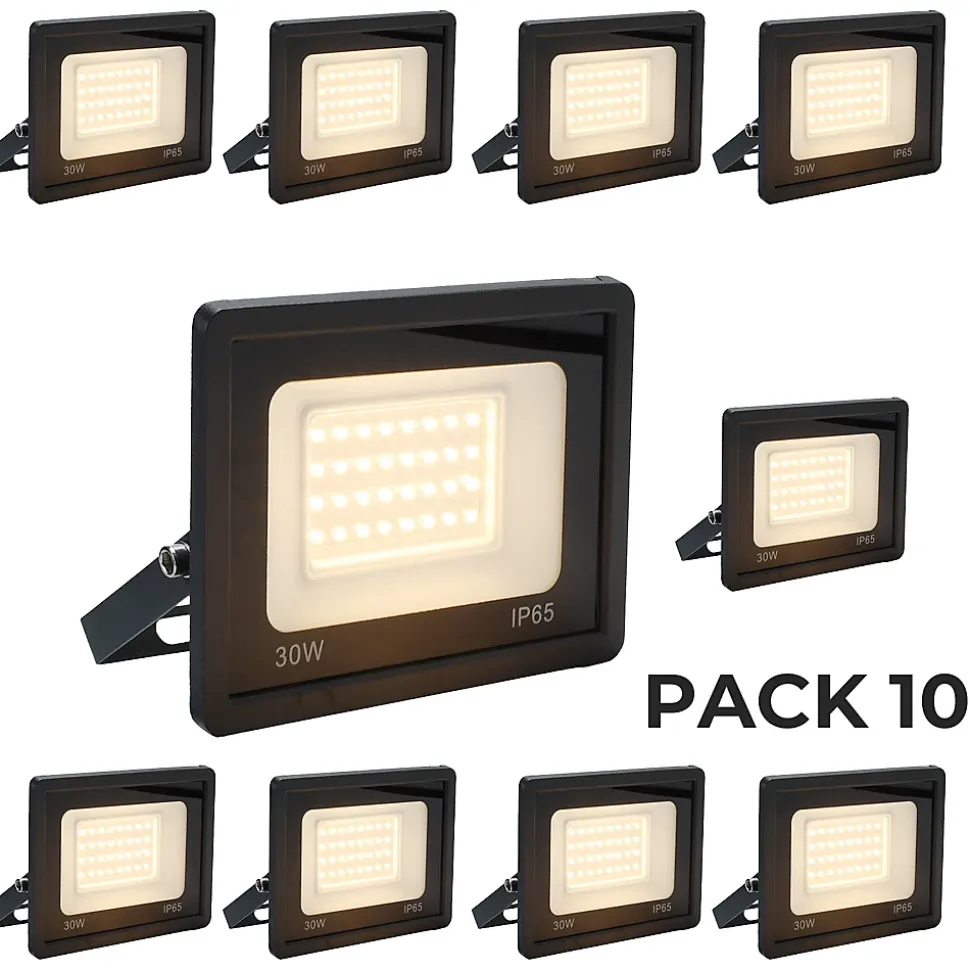 Projecteur LED Extérieur 30W : Éclairage de Haute Qualité et PolyvalenceLe projecteur LED extérieur de 30W offre une solution d’éclairage puissante et durable, idéale pour une variété d’applications tant en extérieur qu’en intérieur.Caractéristiques Principales :Puissance : 30W.Tension : 220-240V/AC.Indice de Protection : IP65, résistant à l’eau et à la poussière, assurant son fonctionnement dans des conditions climatiques difficiles.Dimensions : Compact et maniable, avec des dimensions de 175x130mm.Matériau : Boîtier en métal avec finition noire, robuste et résistant.Verre : Verre trempé pour une meilleure durabilité.Qualité d’Éclairage :Réflecteur de Haute Qualité : Fournit un éclairage brillant et uniforme, sans ombres.Angle d’Ouverture : Angle large de 120 degrés, idéal pour couvrir de grandes surfaces.Chip LED : Équipé d’un chip SMD 2835 haute performance.Indice de Rendu des Couleurs (IRC) : >80, garantissant une représentation des couleurs plus naturelle et précise.Tonalités Disponibles :Lumière Chaude : 3000K, avec une intensité lumineuse de 2850 lumens.Lumière Froide : 6000K, avec une intensité lumineuse de 3150 lumens.Dissipation de Chaleur :Radiateur : Gestion thermique optimale qui prolonge la durée de vie du projecteur et maintient la qualité lumineuse.Polyvalence d’Utilisation : Parfait pour éclairer jardins, garages, entrepôts, patios, ateliers et plus encore. Grâce à son support orientable, le projecteur peut être installé sur des murs, des plafonds ou des sols, dirigeant la lumière exactement là où elle est nécessaire.Inclus : Support d’Orientation : Le support inclus permet d’ajuster facilement la direction du faisceau lumineux, assurant une installation flexible et adaptable à tout environnement.Résumé des Spécifications :Tension : 220-240V/AC.Puissance : 30W.Température de Couleur : 3000K (chaud) ou 6000K (froid).Lumens : 2850lm (chaud) ou 3150lm (froid).Angle d’Ouverture : 120º.Indice de Protection : IP65.Ce p