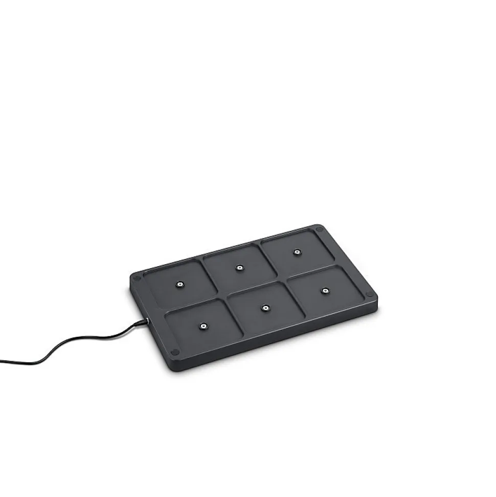 Les caractéristiques techniquesCe lot de 6 lampes de table Fernandez est en plastique et métal gris.Les lampes sont CCT en 3 étapes(2700+4000+6000K) et étanches (IP54).Elles sont également dimmables en continu.Elles se rechargent sur leur station et vous proposent une autonomie de 8 heures pour un temps de charge de 5 heures.Vous pouvez les utiliser en extérieur (IP54).Tout les réglages se font par bouton tactile.Les avantages esthétiquesCraquez pour le gris très contemporain des lampes de table Fernandez qui s’intégreront parfaitement dans tous types d’extérieurs grâce à leur design.Pratique, leur station de recharge vous permet d’avoir en permanence 6 lampes opérationnelles à portée de main.Dimmables en continu, elles vous permettent d’ajuster l’intensité lumineuse en fonction de l’ambiance souhaitée.Etanches, elles peuvent être utilisées à l’extérieur.Les lampes Fernandez permettent de répondre à vos besoins d’éclairage en l’absence d’alimentation électrique à proximité.En usage professionnel, ce produit est idéal pour la terrasse d’un restaurant car vous pourrez éclairer efficacement vos tables sans installation électrique coûteuse et charger 6 lampes en même temps.Le pack Fernandez existe en gris (ref R54096677) et en blanc (R54096631).
