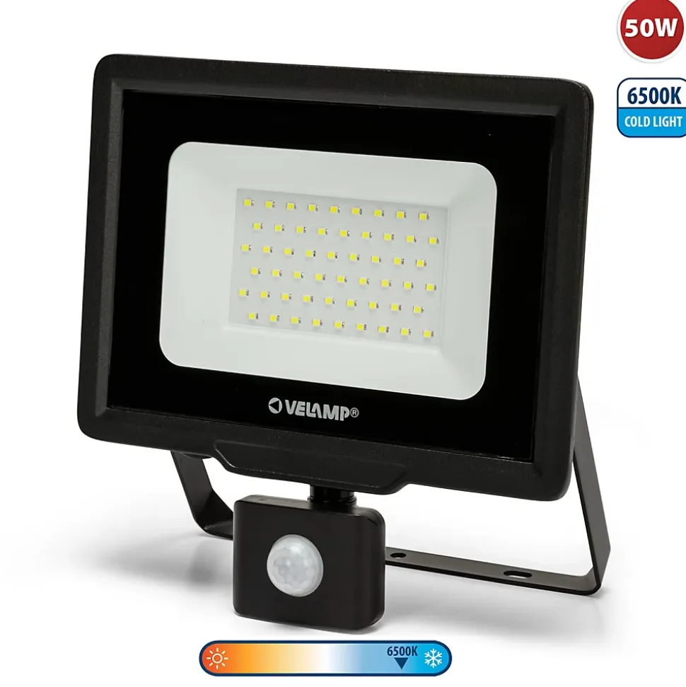 PADLIGHT5, projecteur LED SMD IP44 50W, noir 6500K. Avec détecteur de mouvements