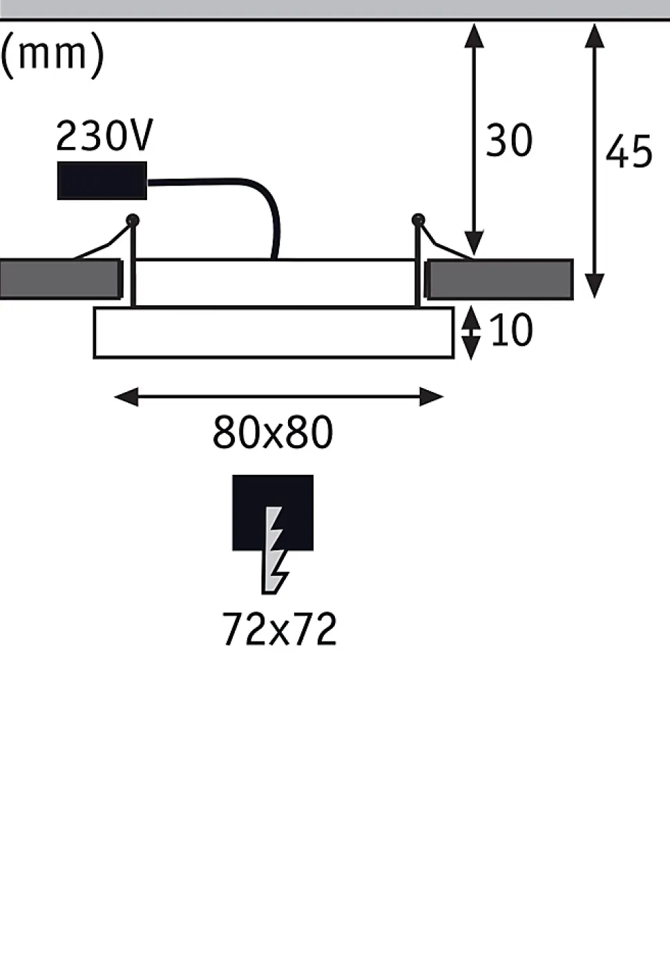 Kit complet comprenant panneau, câble de connexion et matériel de fixation|Cache en plastique satiné pour une diffusion subtile de la lumière|Faible profondeur d’encastrement de 35 mm seulement|Pour raccordement direct au secteur 230V|Ampoules LED intégrée également fournies|Température de couleur: 3000K – Blanc chaud