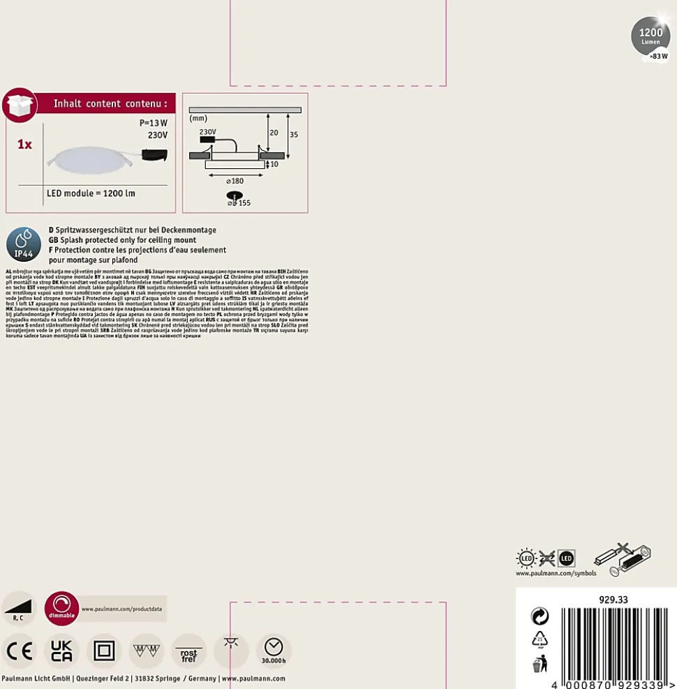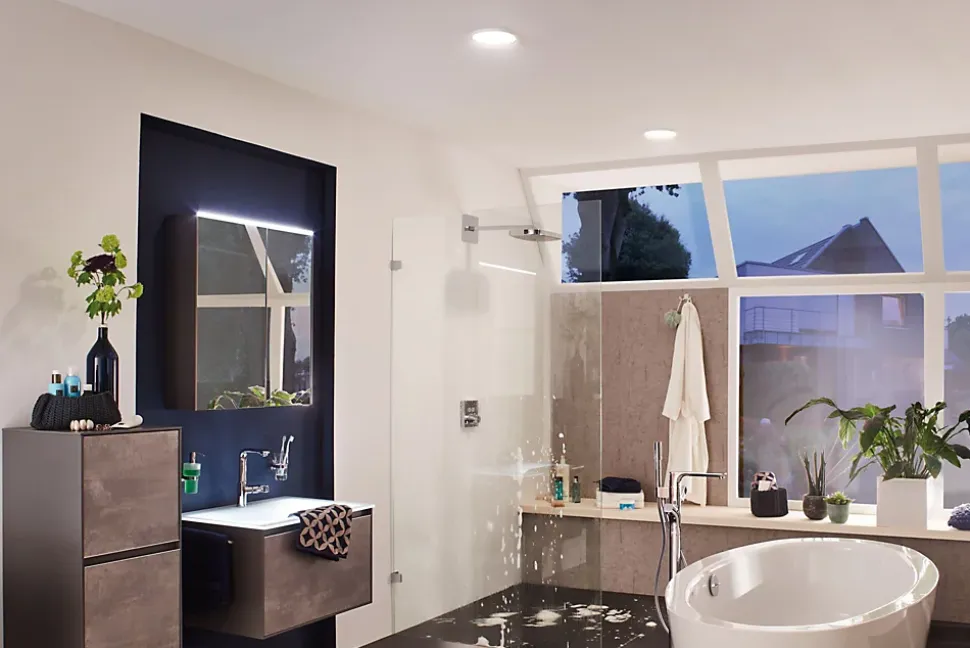 Le panneau rond encastré LED Areo de 18 cm de diamètre et d’une puissance de 12 watts se distingue par son bord particulièrement mince et sa fonction de variation d’intensité. L’armature plastique blanc dépoli est particulièrement facile à installer grâce à son faible poids et à entretenir.