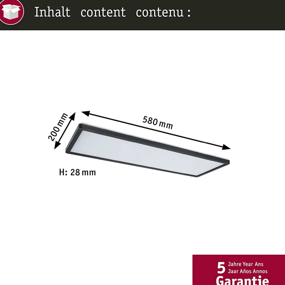Avec une puissance de 22W, le panneau LED carrée Atria Shine de couleur Noir et mesurant 580x200mm est idéal pour l’éclairage de base des salons, chambres ou cuisines. La lumière du panneau permet d’éclairer la pièce de manière uniforme et étendue. La technologie Backlight supplémentaire crée une atmosphère de bien-être particulière et donne comme l’impression que l’éclairage du panneau flotte. Grâce aux clips de fixation rapides et à la fermeture à vis spéciale, le panneau, avec sa hauteur de montage ultraplate de 28 mm, est très facile à installer.