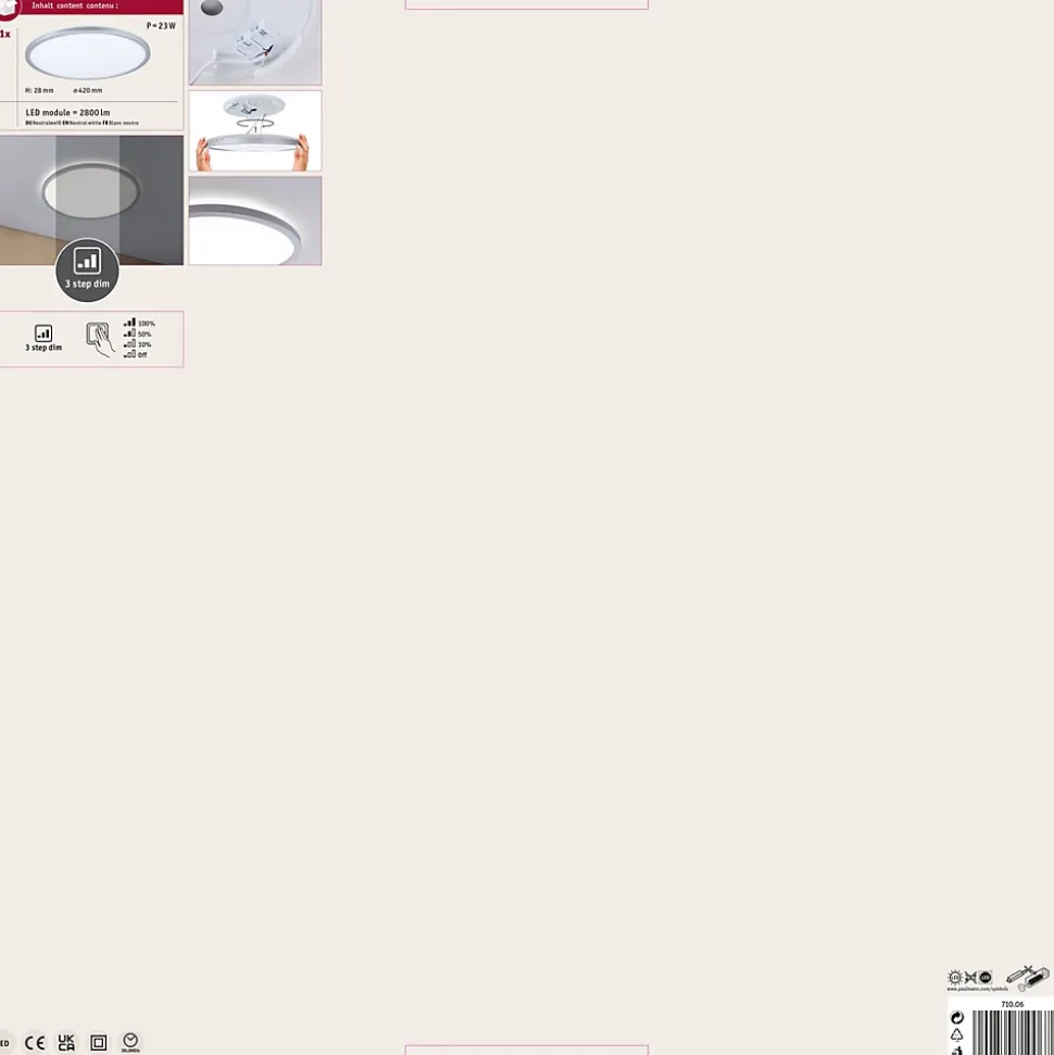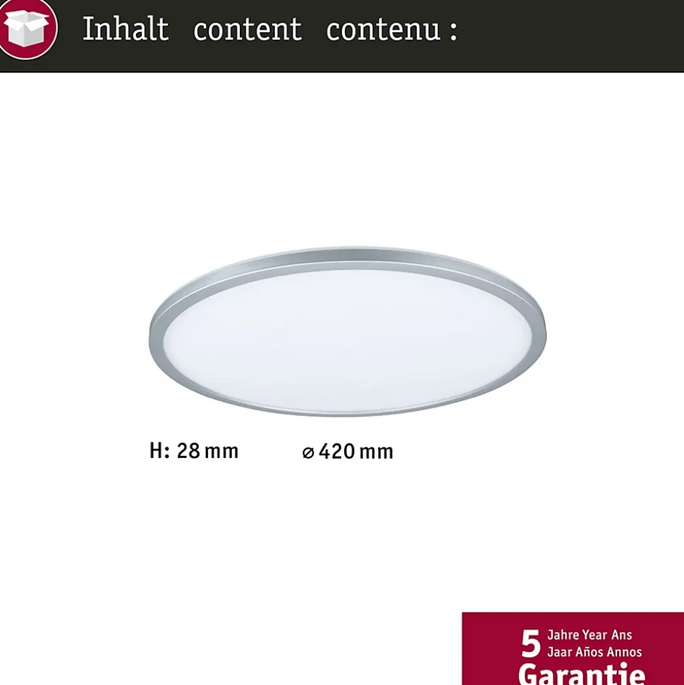 Avec une puissance de 22W, le panneau LED ronde Atria Shine de couleur Chrome mat et mesurant 420mm est idéal pour l’éclairage de base des salons, chambres ou cuisines. La lumière du panneau permet d’éclairer la pièce de manière uniforme et étendue. La technologie Backlight supplémentaire crée une atmosphère de bien-être particulière et donne comme l’impression que l’éclairage du panneau flotte. Grâce aux clips de fixation rapides et à la fermeture à vis spéciale, le panneau, avec sa hauteur de montage ultraplate de 28 mm, est très facile à installer.