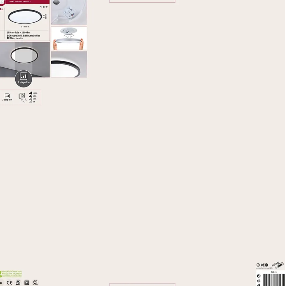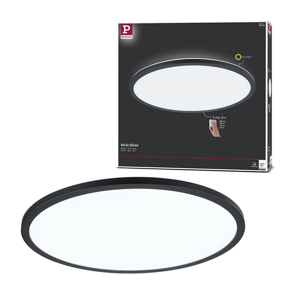 Avec une puissance de 22W, le panneau LED ronde Atria Shine de couleur Noir et mesurant 420mm est idéal pour l’éclairage de base des salons, chambres ou cuisines. La lumière blanche et chaude du panneau permet d’éclairer la pièce de manière uniforme et étendue. Avec sa fonction intégrée gradable sur 3 niveaux, il offre trois intensités de lumière en actionnant plusieurs fois un simple commutateur traditionnel. La technologie Backlight supplémentaire crée une atmosphère de bien-être particulière et donne comme l’impression que l’éclairage du panneau flotte. Grâce aux clips de fixation rapides et à la fermeture à vis spéciale, le panneau, avec sa hauteur de montage ultraplate de 28 mm, est très facile à installer.