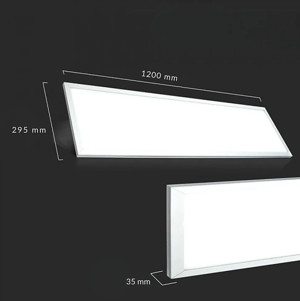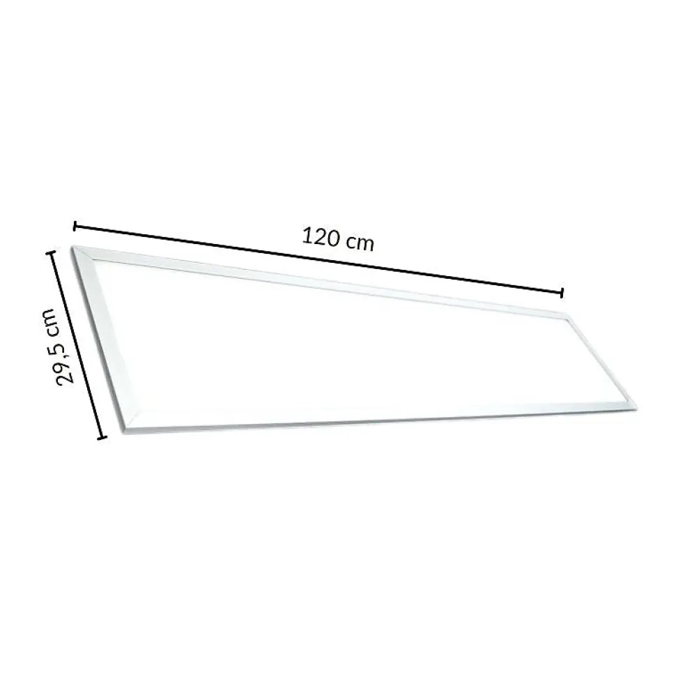 - [Format 120×30 cm] Conçu pour s’intégrer parfaitement dans les dalles de plafond standards ou en montage en saillie, ce panneau LED assure un éclairage moderne, uniforme et sans scintillement.