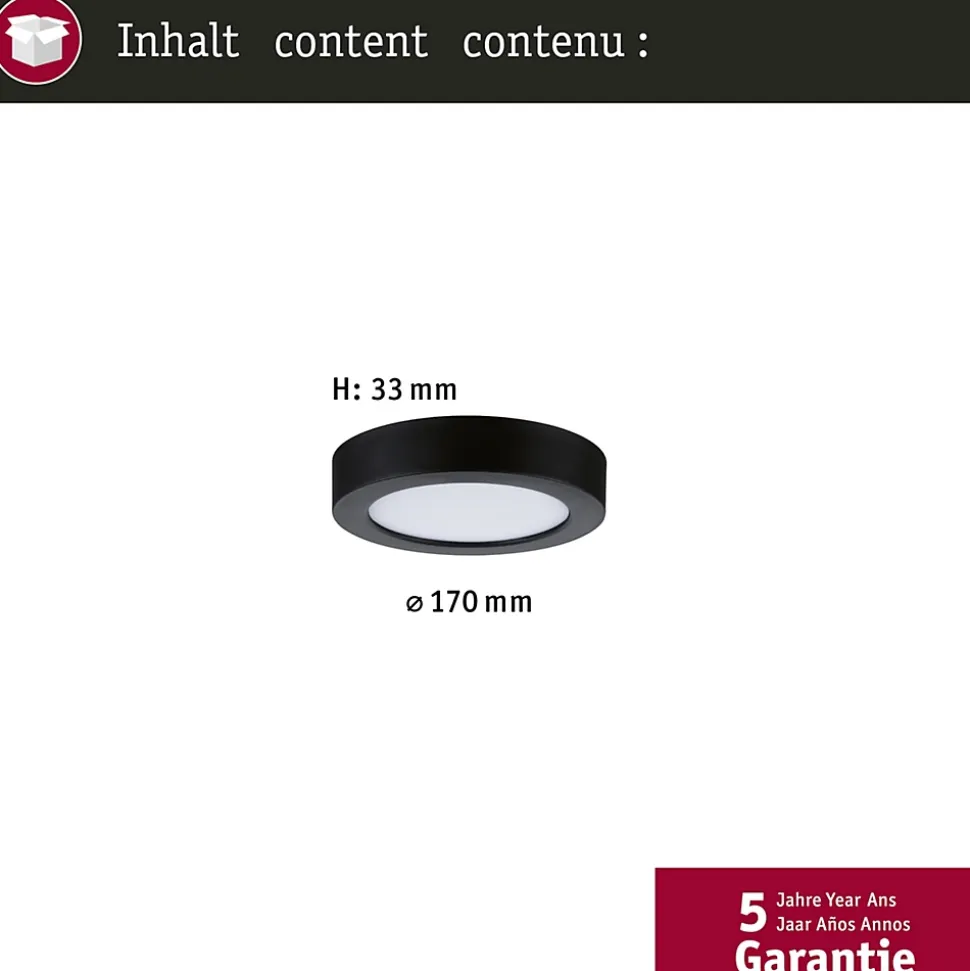 Plus de confort. Plus de sécurité. Plus de possibilités ! Le panneau Abia 2 met fin aux compromis et apporte une solution d’éclairage fonctionnelle dans chaque pièce. Un interrupteur Dip permet d’activer ou de désactiver le capteur de mouvement intégré commandé par crépuscule avant le montage. Le panneau offre ainsi une solution optimale aux différentes exigences des espaces fonctionnels, des cuisines ou des couloirs. Le capteur réagit de manière fiable aux mouvements et assure un confort et une sécurité accrus grâce à la commande automatique de l’éclairage. Lorsque le capteur est activé, la lumière ne s’allume que lorsqu’elle est nécessaire, ce qui permet une utilisation efficace de l’énergie. Lorsque le capteur est désactivé, le panneau LED peut être allumé et éteint confortablement comme d’habitude à l’aide de l’interrupteur mural existant. L’interrupteur Dip White Select, qui permet de régler la température de Farbe avant le montage, offre également une flexibilité maximale. Selon les besoins, il est possible de choisir entre deux tons de blanc chaud et un ton de blanc neutre. Le panneau d’un diamètre de 170mm est facile à monter et s’intègre parfaitement dans tout environnement résidentiel, fonctionnel ou de travail grâce à son design intemporel en Noir.