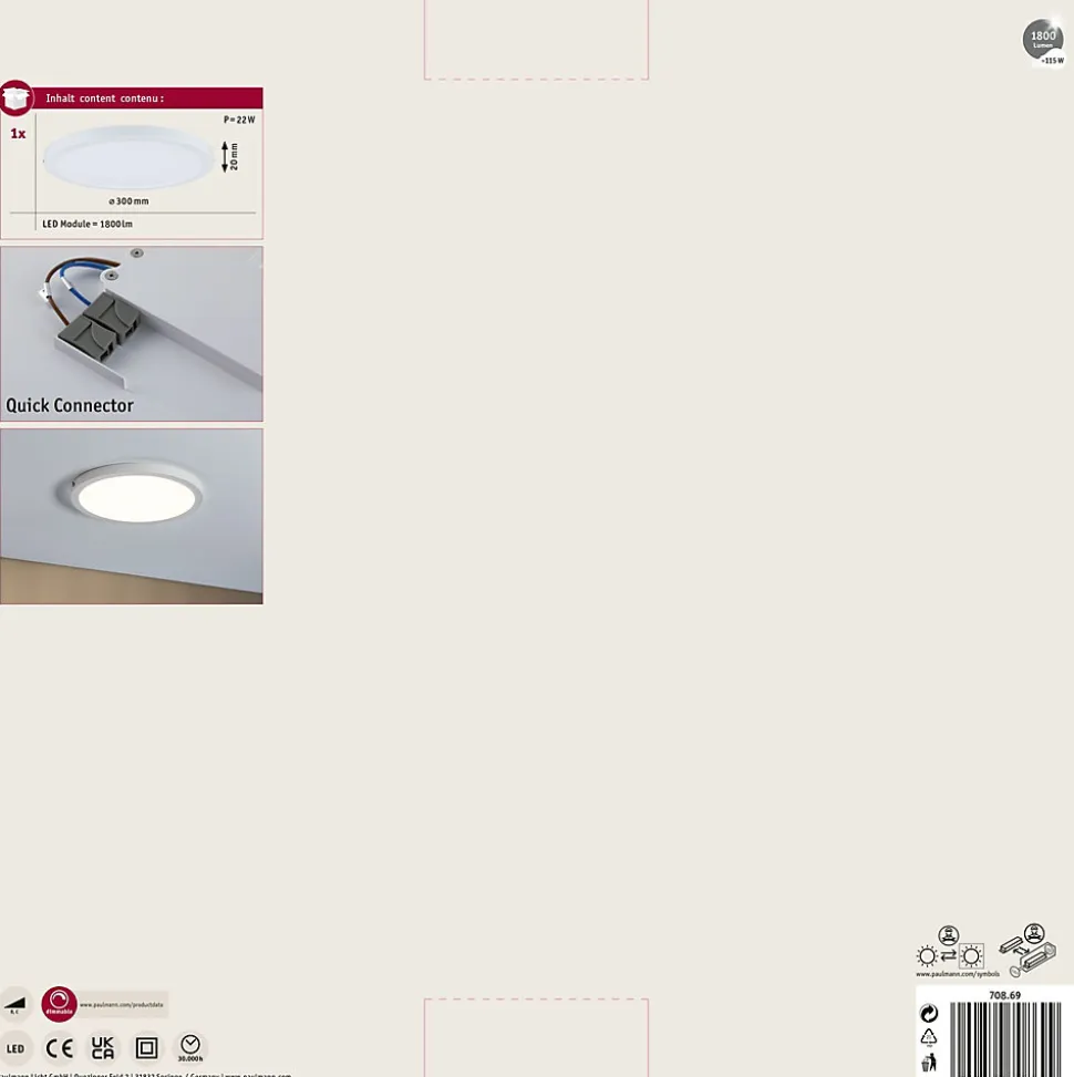 Panneau LED Atria rond 300mm 16W 1450lm 2700K Blanc gradable