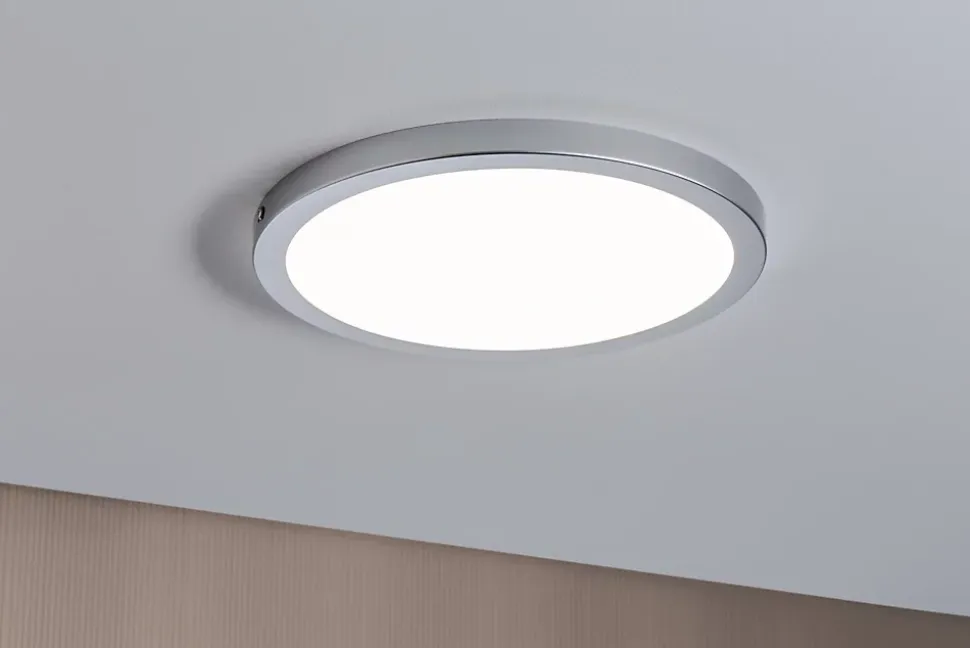 Le panneau rond chrome mat Atria d’une puissance de 19 watts offre un éclairage intérieur blanc neutre, homogène et étendu. Grâce à son épaisseur de 20 mm, il est particulièrement plat. Le luminaire peut être installé sur quasiment tous les supports grâce à son armature légère en plastique facile d’entretien.