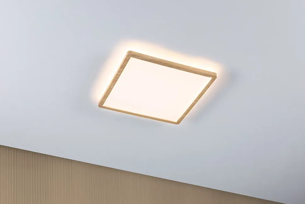 Avec une puissance de 16W, le panneau LED carré Atria Shine mesurant 293×293 mm est idéal pour l’éclairage de base des salons, chambres ou cuisines. Le design unique du cadre à l’aspect bois confère au panneau un aspect naturel et confortable. La lumière blanche et chaude du panneau permet d’éclairer la pièce de manière uniforme et étendue. La technologie lumineuse supplémentaire Backlight donne l’impression que le panneau lumineux flotte. Grâce au clip de fixation rapide et au montage de la platine, le panneau est très facile à installer avec sa hauteur de montage ultra-plate de 28 mm.