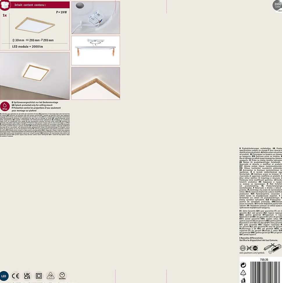 Avec une puissance de 16W, le panneau LED carré Atria Shine mesurant 293×293 mm est idéal pour l’éclairage de base des salons, chambres ou cuisines. Le design unique du cadre à l’aspect bois confère au panneau un aspect naturel et confortable. La lumière blanche et chaude du panneau permet d’éclairer la pièce de manière uniforme et étendue. La technologie lumineuse supplémentaire Backlight donne l’impression que le panneau lumineux flotte. Grâce au clip de fixation rapide et au montage de la platine, le panneau est très facile à installer avec sa hauteur de montage ultra-plate de 28 mm.