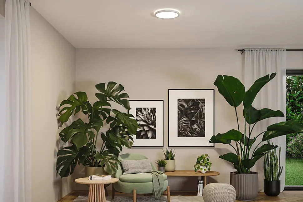 Le rondpanneau Atria Shine en Blanc est vraiment polyvalent grâce à sa grande performance énergétique et sa variété de couleurs de feu ! Avec sa performance énergétique améliorée, passée de la classe E à la classe B, le nouveau panneau Atria Shine offre une solution d’éclairage innovante et durable. Cette réduction significative de la consommation d’énergie est non seulement bénéfique pour l’environnement, mais aussi pour le porte-monnaie. Avant l’installation, l’interrupteur White Select permet de choisir entre trois températures de couleur : blanc chaud (3000 K), blanc neutre (4000 K) ou blanc lumière du jour (6500 K). Que ce soit pour un espace de vie confortable, l’éclairage fonctionnel d’une cuisine ou un bureau bien éclairé, il existe une atmosphère lumineuse adaptée à chaque pièce. Avec une luminosité impressionnante de 14,8W, le panneau Atria Shine est également idéal pour les applications exigeantes qui nécessitent beaucoup de lumière. L’aspect visuel du luminaire se distingue par son apparence presque flottante, obtenue grâce à la technologie Backlight efficace. Grâce à son design sobre, il s’intègre parfaitement dans différents styles d’aménagement et peut même être utilisé dans la salle de bains grâce à sa protection IP44. Le montage au mur ou au plafond est simple grâce à la fermeture rotative et au clip de fixation rapide.