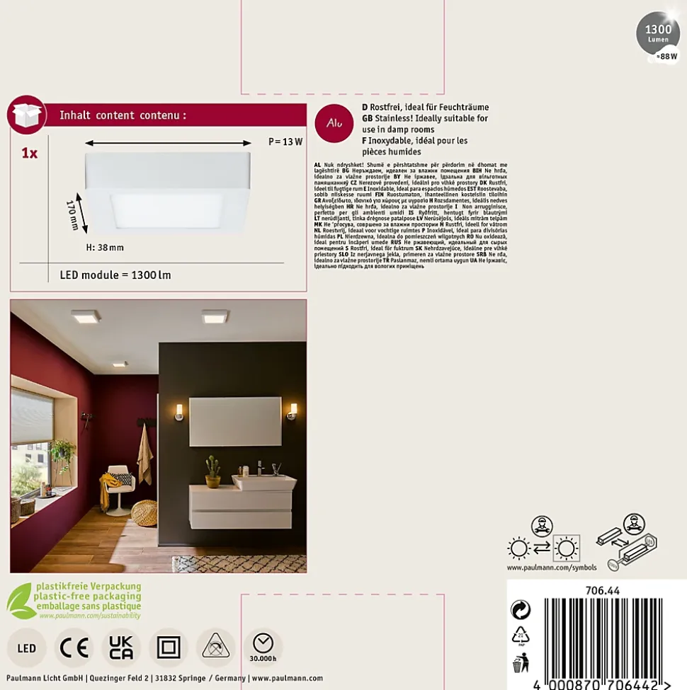 Panneau LED Lunar carré 170x170mm 11W 760lm 3000K Blanc dépoli