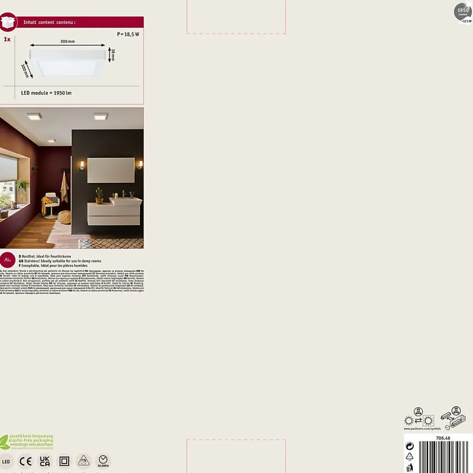 Panneau LED Lunar carré 300x300mm 16W 1300lm 3000K Blanc
