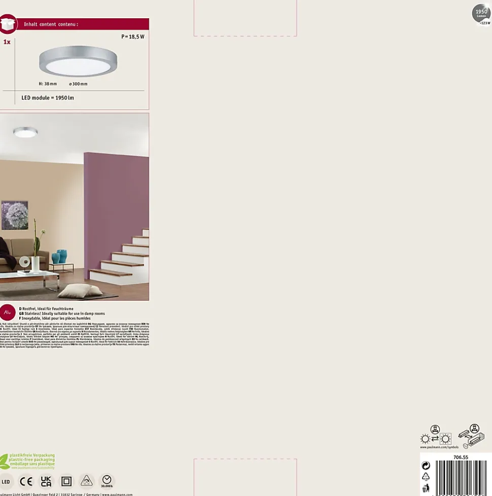 Une technologie LED moderne permet à l’applique et au plafonnier Lunar de conjuguer un design extrêmement plat et une diffusion de la lumière remarquablement uniforme. La ligne discrète et claire s’harmonise aussi bien avec les intérieurs modernes confortables qu’avec une ambiance design.