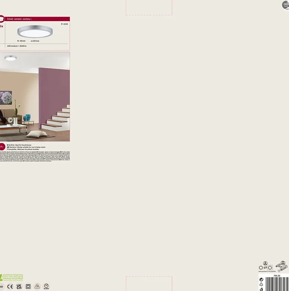 Panneau LED Lunar rond 400mm 22W 1700lm 3000K Chrome mat