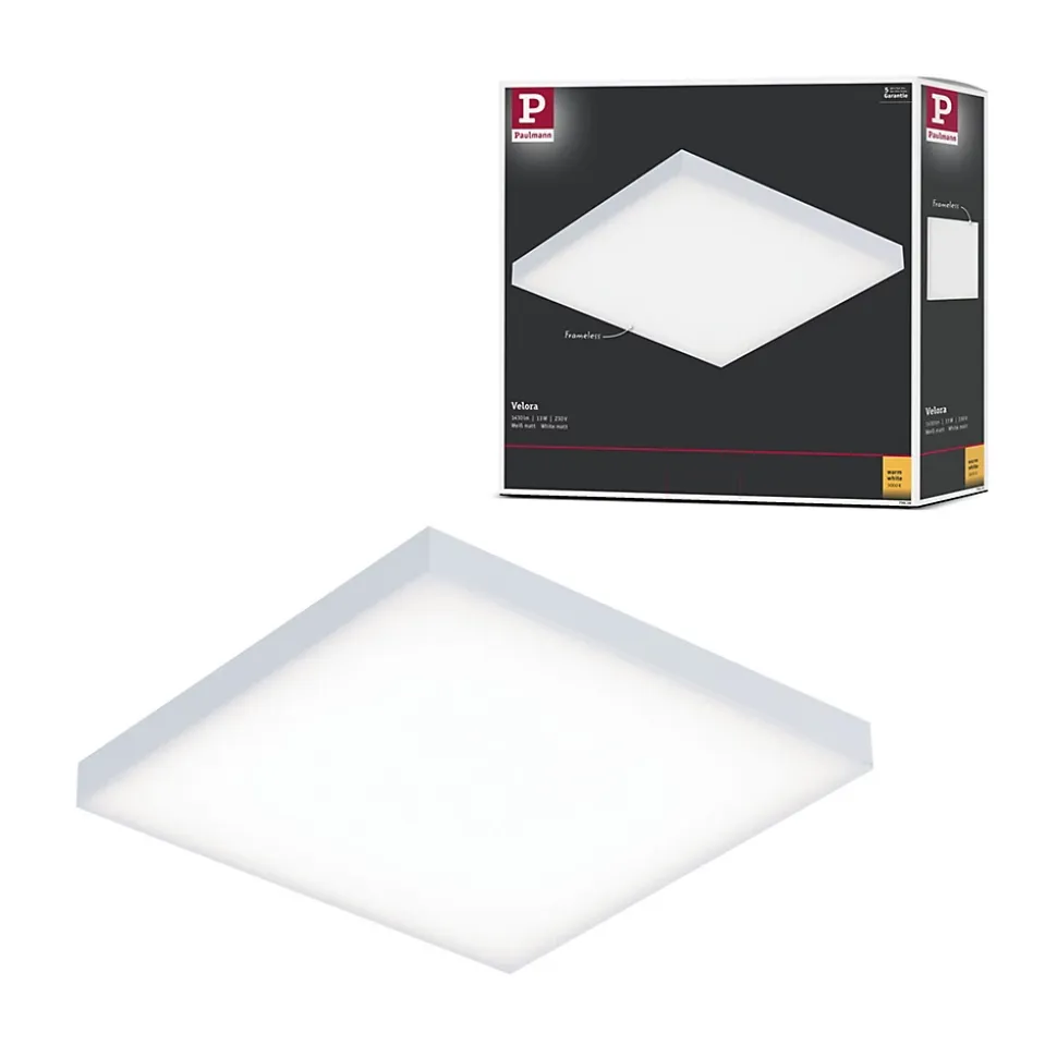 Le panneau en saillie Velora sans cadre et de dimension 225x225mm se veut particulièrement discret par sa forme ultraplate. La surface satinée du diffuseur produit un agréable éclairage d’ambiance étendu. Le support métallique stable facilite le montage et donne l’impression que le panneau flotte en apesanteur.
