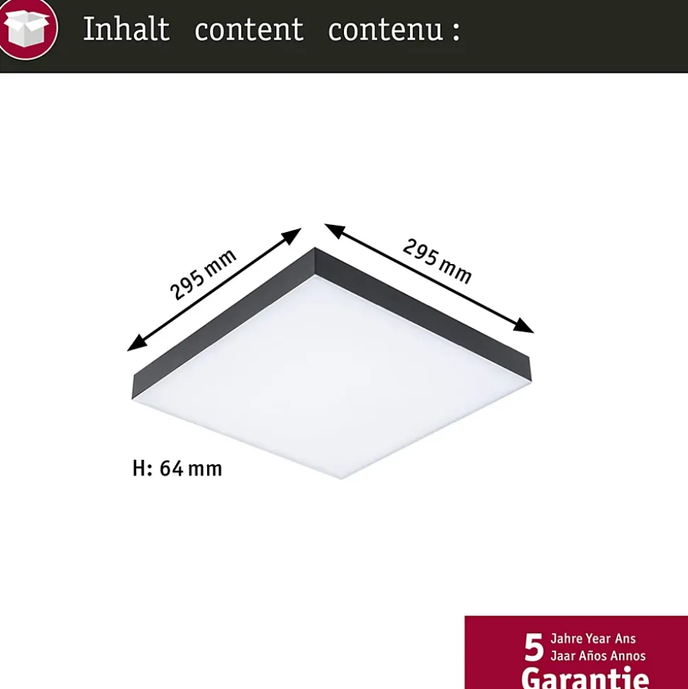 Pour des effets lumineux spectaculaires dans le salon – Le panneau LED Velora Rainbow de couleur Noir et de dimensions 295x295mm, allie un excellent éclairage de la pièce à la pure magie des couleurs, car ici, les meilleures caractéristiques d’éclairage se trouvent combinées à des effets de couleur dynamiques. La température de couleur est réglable en continu par télécommande, de 3000 K blanc chaud à 6500 K blanc lumière du jour, ce qui est propice au biorythme naturel. Le panneau LED vous séduira aussi avec ses 16 animations prédéfinies et son contrôle dynamique des couleurs, qui ne sont possibles qu’avec un éclairage étendu. La vitesse de chaque scénario d’éclairage peut être adaptée ou figée comme un plan fixe. Cela permet de créer un éclairage étendu unique et individuel. Le panneau LED Velora Rainbow est réglable en continu et dispose d’une fonction veilleuse intégrée. Le panneau se distingue par sa surface lumineuse dépolie de haute qualité et par son design élégant dépourvu de bord. La pose au mur ou au plafond se fait au moyen d’un cadre flottant.