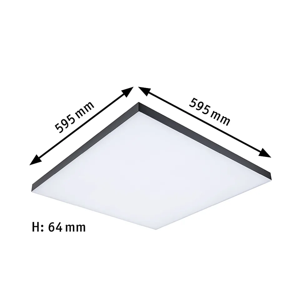 Pour des effets lumineux spectaculaires dans le salon – Le panneau LED Velora Rainbow de couleur Noir et de dimensions 595x595mm, allie un excellent éclairage de la pièce à la pure magie des couleurs, car ici, les meilleures caractéristiques d’éclairage se trouvent combinées à des effets de couleur dynamiques. La température de couleur est réglable en continu par télécommande, de 3000 K blanc chaud à 6500 K blanc lumière du jour, ce qui est propice au biorythme naturel. Le panneau LED vous séduira aussi avec ses 16 animations prédéfinies et son contrôle dynamique des couleurs, qui ne sont possibles qu’avec un éclairage étendu. La vitesse de chaque scénario d’éclairage peut être adaptée ou figée comme un plan fixe. Cela permet de créer un éclairage étendu unique et individuel. Le panneau LED Velora Rainbow est réglable en continu et dispose d’une fonction veilleuse intégrée. Le panneau se distingue par sa surface lumineuse dépolie de haute qualité et par son design élégant dépourvu de bord. La pose au mur ou au plafond se fait au moyen d’un cadre flottant.