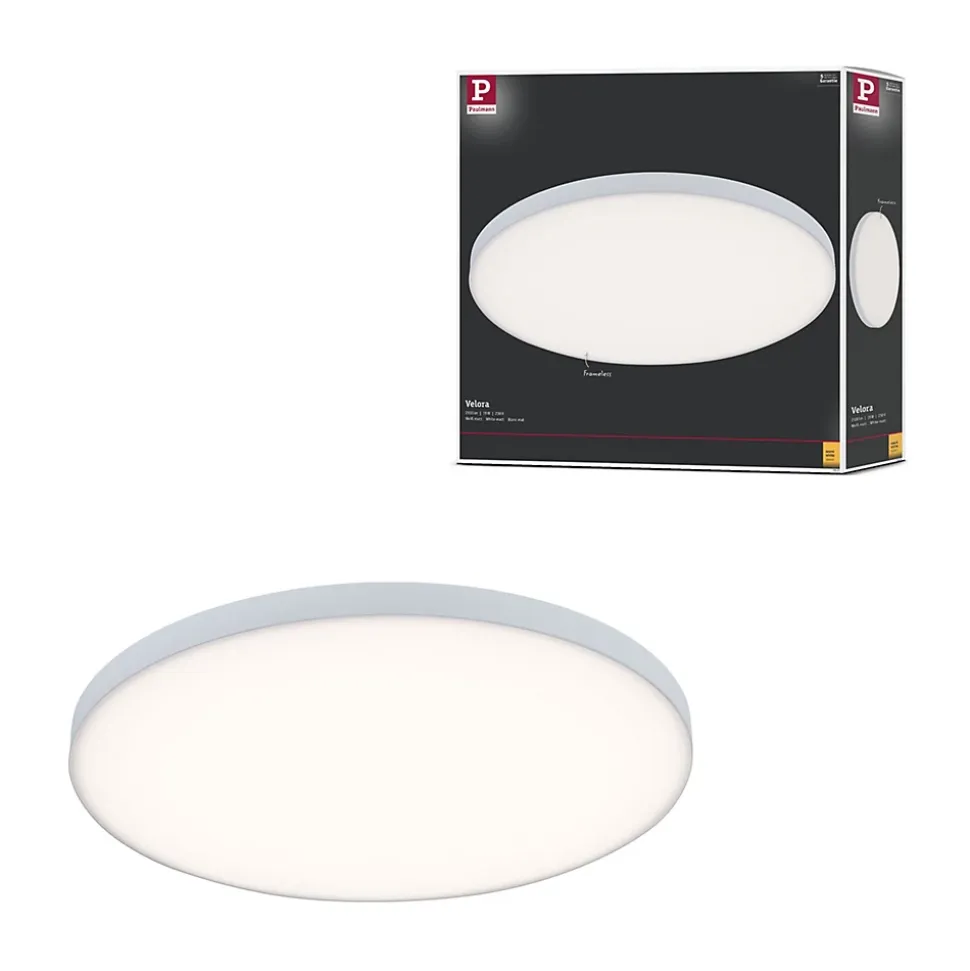 Le panneau en saillie sans cadre Velora peut être posé au mur ou au plafond. Avec sa forme ultraplate, ce panneau rond d’un diamètre de 400 mm se confond avec le mur et le plafond. La surface satinée du diffuseur produit un agréable éclairage d’ambiance étendu. Le support métallique stable facilite le montage et donne l’impression que le panneau flotte en apesanteur.