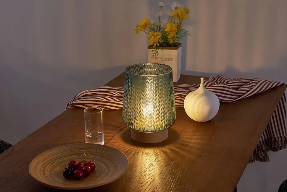 Magie lumineuse romantique : Lampe à poser en verre raffiné dans des coloris doux|Une touche décorative : De beaux motifs dans le verre sont des garants de l’élégance|De la lumière où vous en avez besoin : sans fil grâce à des piles