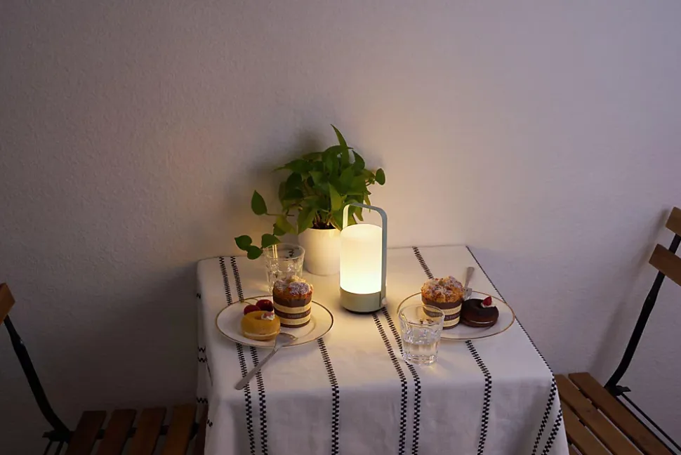 De la lumière où vous en avez besoin : sans fil grâce à des piles|Fonctionnement sur piles ou sur batterie|Commutateur on/off sur le socle de la lampe|IP44 – Protection contre les projections d’eau, y compris en extérieur|Luminaire d’extérieur mobile sur batterie|Idéal pour le balcon et le jardin