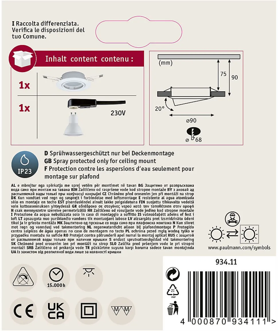 - Indice de protection IP23 adapté aux lieux intérieurs comme salon, salle à manger, chambre et cuisine.