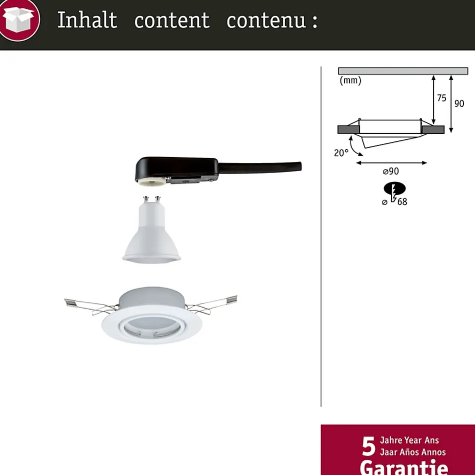 - Ampoule LED GU10 fournie 5 W, 350 lm, lumière blanc chaud 2700–3000 K pour une ambiance chaleureuse.