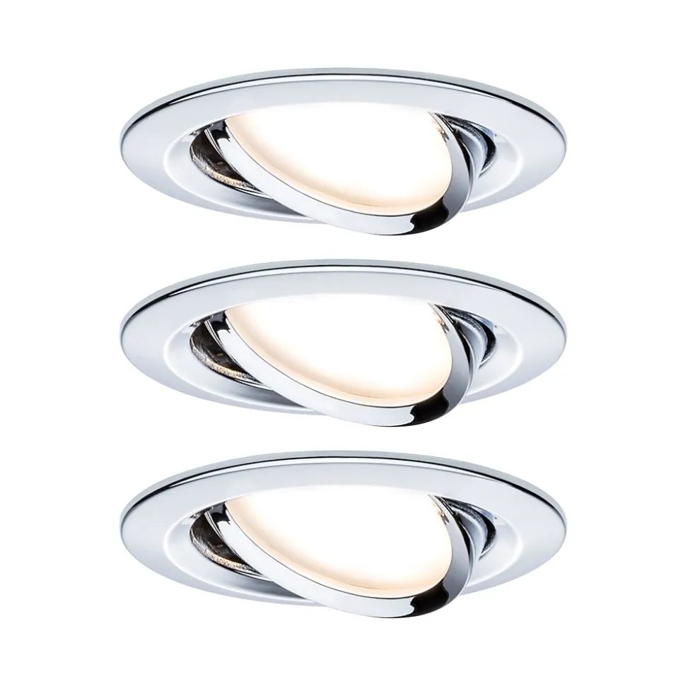 - Jeu de 3 spots encastrables en aluminium, design moderne et finition chrome brillante.