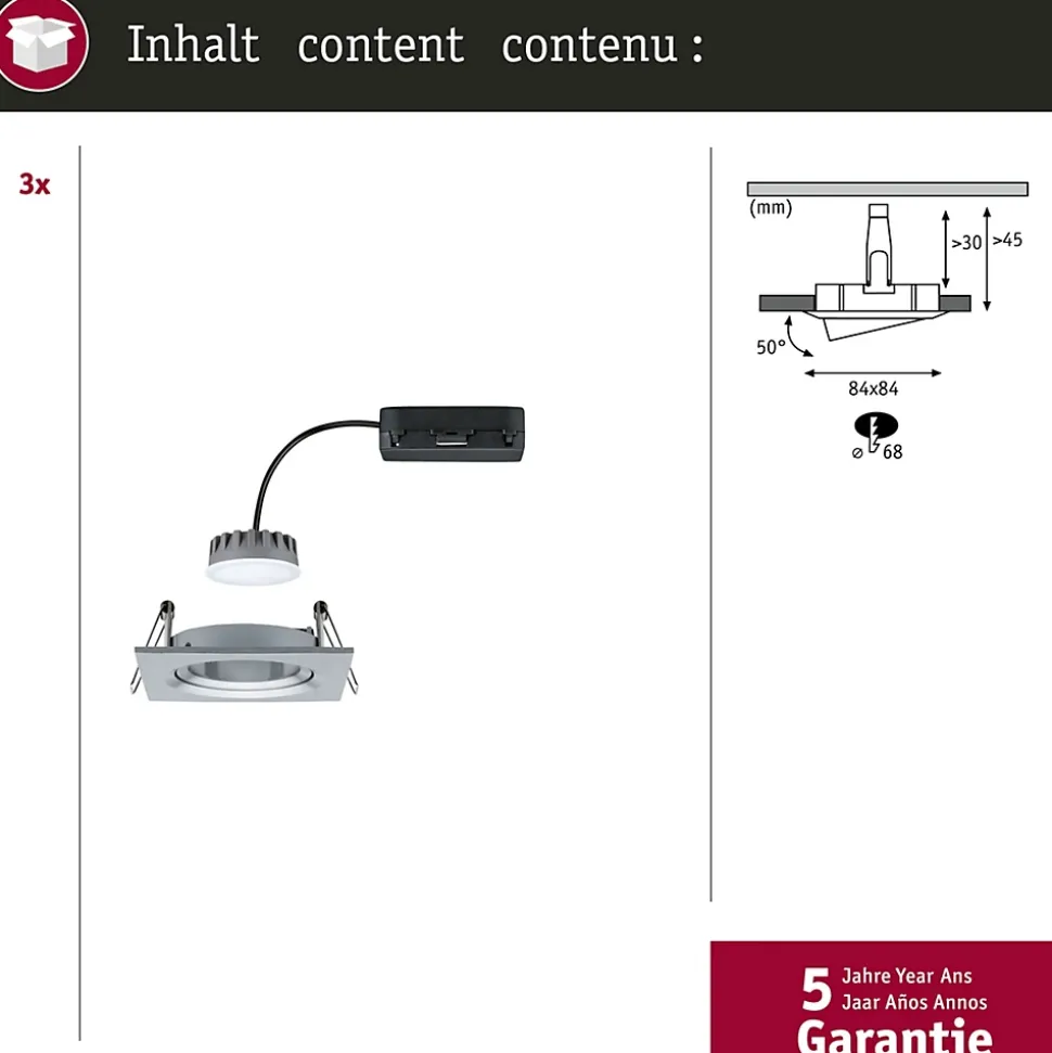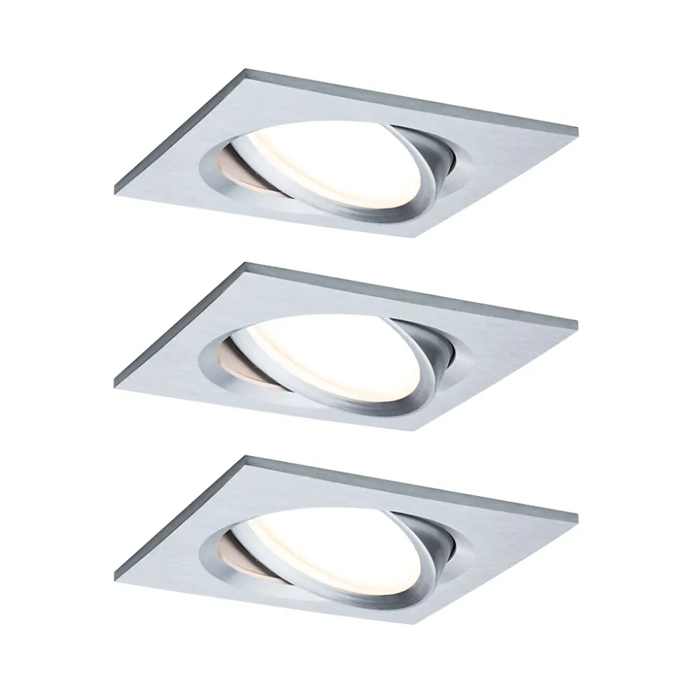 Les spots encastrés Nova Plus carrés en (kit de 3) en Alu tourné avec LED-Coin remplaçable, conviennent aussi bien à l’équipement de nouvelles installations qu’au remplacement d’équipements existants. De forme particulièrement plate, ils s’intègrent dans les plafonds disposant d’un espace creux de 30 mm seulement. Grâce à un raccordement par clips de fixation rapides, les luminaires individuels sont simples et rapides à monter. Leur variateur d’intensité permet un ajustement individuel de la luminosité offrant deux effets majeurs : vous jouissez d’une lumière de travail blanc chaud tout en baignant dans une ambiance cocooning. Grâce à sa capacité de pivotement, le spot peut être orienté individuellement.
