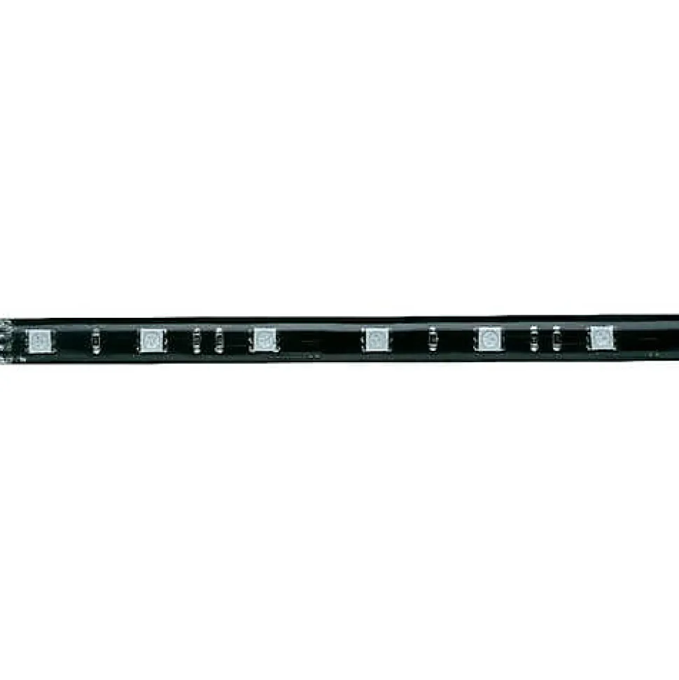 Ruban LED Paulmann YourLED 70210 RVB, longueur 97,5 cm, alimentation 12 V, puissance 9,36 W, flux lumineux 273 lm. Bande flexible en plastique avec face arrière autocollante pour un montage facile, découpable et dimmable via le contrôleur RGB YourLED (à commander séparément). Application pour intérieur, classe de protection III, couleur de câble noir. Contenu : ruban LED avec connecteur mâle inclus. Sélectionnez l’alimentation adaptée selon la longueur totale des bandes; accessoires de protection contre les jets d’eau disponibles en option.