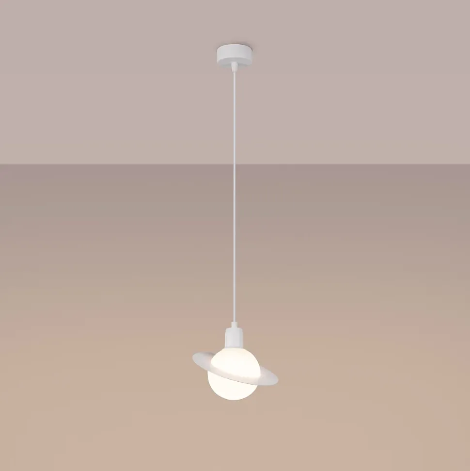 Cette élégante lampe suspendue, inspirée par l’apparence d’une planète annelée, est un excellent choix pour les amateurs de design moderne. Sa forme unique lui confère un caractère cosmique distinctif. L’abat-jour de la lampe se présente sous la forme d’une sphère blanche ou noire, entourée d’un anneau plat et discret, ce qui attire l’attention et constitue un accent élégant dans n’importe quel intérieur. Elle est idéale pour être suspendue au-dessus d’une table à manger, dans le salon, ou comme décoration accrocheuse dans la chambre à coucher. Cette lampe fournit non seulement un excellent éclairage, mais ajoute également une atmosphère moderne et légèrement futuriste à l’intérieur.
