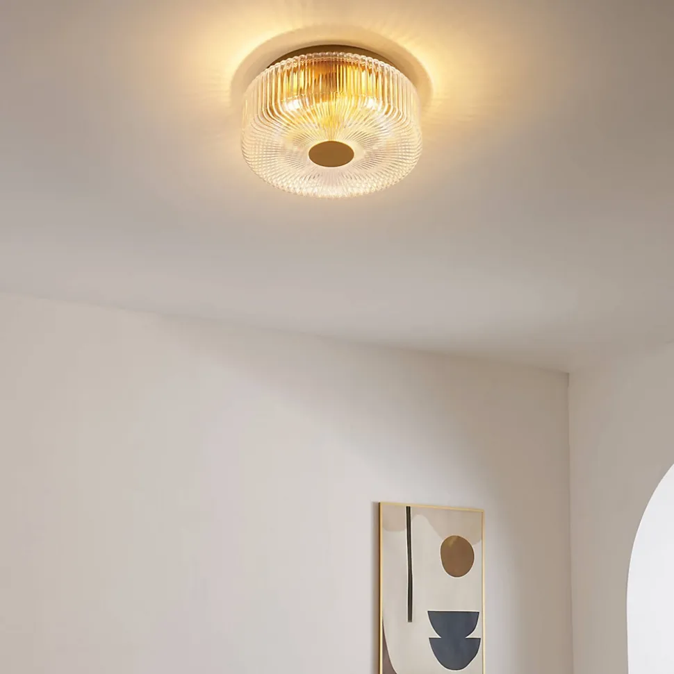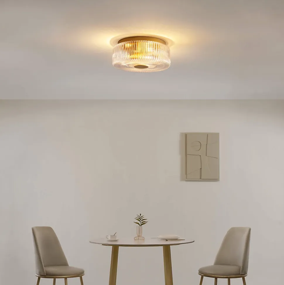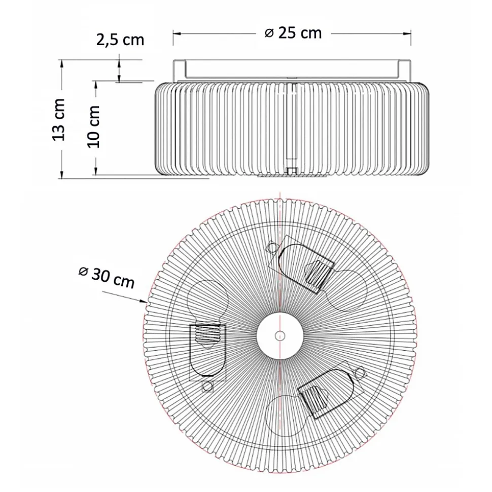 Le luminaire Paolina est un modèle compact et polyvalent qui fonctionne aussi bien comme petit spot au plafond qu’en applique murale. Avec un diamètre de 30 cm et une hauteur de 13 cm, il est parfait pour les espaces alliant élégance et fonctionnalité. Son socle doré ajoute une touche de luxe subtil, tandis que l’abat-jour en verre transparent apporte une sensation de légèreté. Il dispose d’un emplacement pour 3 ampoules E27, où vous pouvez opter pour des LED classiques ou des LED à filament pour un style rétro. Lorsqu’il est allumé, Paolina offre un éclairage puissant et décoratif, et ses petits reliefs en verre diffusent la lumière en charmants reflets sur les murs.) Assemblage simple requis (