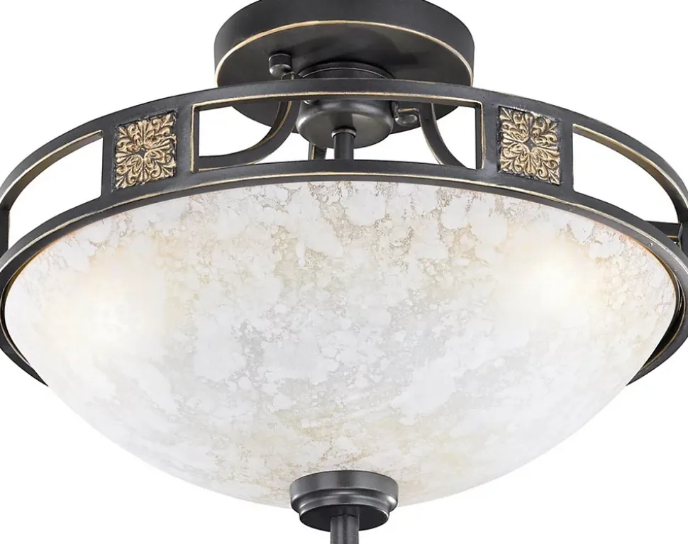 Le plafonnier Quinta : charme arts déco et ambiance chaleureuseLe plafonnier Quinta de TRIO séduit par son style authentique et son design inspiré des maîtres verriers de l’école de Nancy. Avec son cadre en métal finition rouille agrémenté d’ornements dorés, il apporte une touche de caractère à vos intérieurs rustiques ou méditerranéens. Son diamètre de 42 cm et sa hauteur de 32 cm en font un choix idéal pour habiller joliment vos pièces de vie.Une lumière douce et accueillanteDoté d’un diffuseur en verre albâtre légèrement texturé, ce plafonnier diffuse une lumière chaleureuse et tamisée, parfaite pour créer une ambiance conviviale et reposante dans votre salon, salle à manger ou entrée. Compatible avec 3 ampoules E27 (jusqu’à 60W chacune), il permet de personnaliser l’intensité lumineuse selon vos envies.Compatibilité avec les ampoules LEDPour un éclairage écoénergétique, il est conseillé d’opter pour des ampoules LED. Elles offrent jusqu’à 80 % d’économies d’énergie par rapport aux lampes halogènes classiques, tout en garantissant une excellente qualité de lumière, une longue durée de vie et une faible émission de chaleur. Une solution durable qui respecte aussi l’environnement.Caractéristiques supplémentairesMontage facile au plafondIndice de protection IP20 : pour un usage en intérieurTension : 230V ~ 50HzClasse de protection : IDimensions : Ø 42 cm, hauteur 32 cmApportez du charme et du caractère à votre intérieur avec le plafonnier Quinta : une pièce décorative qui allie authenticité, chaleur et qualité.