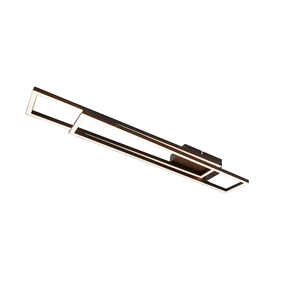 Design épuré et moderne, que demander de plus ? Plazas Novo a tout ! Ce plafonnier en aluminium noir avec acier s’intègre à tous les intérieurs. Il mesure 8 cm de haut, 110 cm de long et 25 cm de large. Sa plaque de montage mesure 4,5 cm de haut, 16 cm de long et 10,5 cm de large. Le plafonnier est équipé d’un éclairage LED non remplaçable, avec une puissance lumineuse de 2 200 lumens et une température de couleur de 2 700 Kelvin. Une véritable puissance qui diffuse une lumière blanche intense. La lampe est également équipée d’un variateur d’intensité à 3 niveaux. Cela signifie que lorsque vous appuyez une fois sur l’interrupteur, vous obtenez 100 % de lumière (pleine puissance). Une deuxième pression vous donnera 60 % et une troisième 30 % (ambiance). Vous avez ainsi toujours l’intensité lumineuse souhaitée dans la pièce, c’est super pratique ! En moyenne, Plazas Novo dure 30 000 heures ! N’attendez plus et installez Plazas Novo dans votre salon, votre bureau ou votre salle à manger.