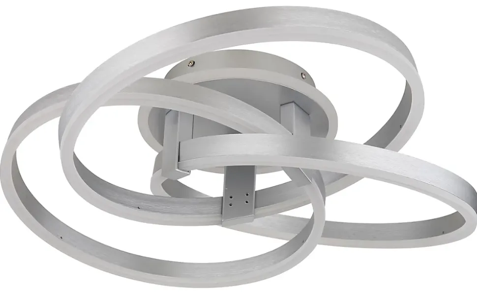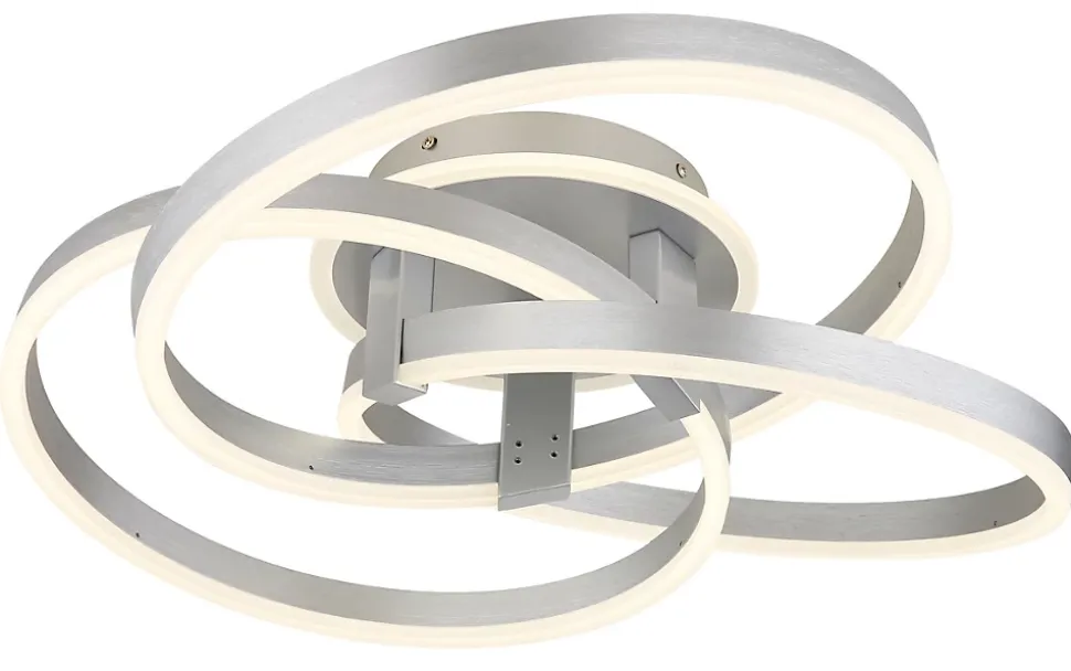 Plafonnier aluminium brossé, métal gris mat, Acrylique opale, satiné, Dimmable, Plusieurs intensités à gérer par un interrupteur mural, couleur fixe, Fonction de mémoire, Veilleuse, Télécommande, Batterie incluse 2x AAA, LxPxH: 600x575x200mm, incl. LED 56W 230V, 688-6893lm Source, 485-4751lm Output, CCT 2700-6000K