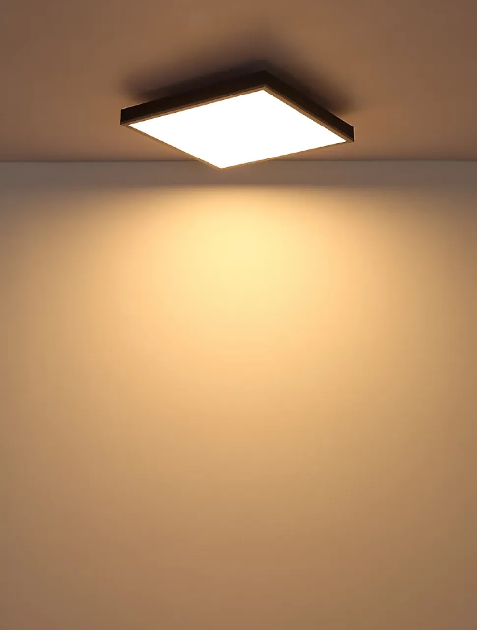 Plafonnier aluminium couleur argent, MDF gris foncé, plastique opale, LxPxH: 450x450x65mm, incl. LED 24W 230V, 2500lm Source, 1200lm Output, 3000K
