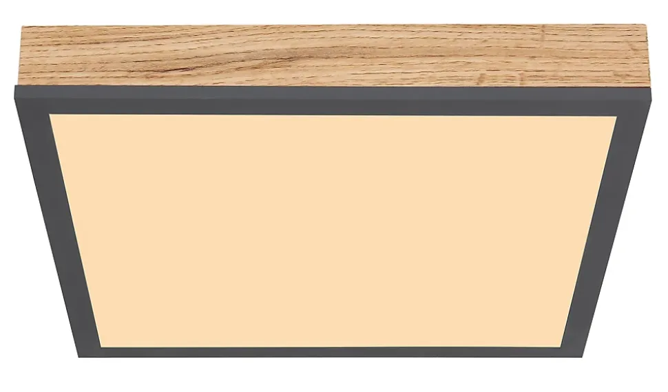 Plafonnier aluminium graphite, MDF décor bois, Acrylique opale, LxPxH: 300x300x60mm, incl. LED 12W 230V, 1200lm Source, 800lm Output, 3000K
